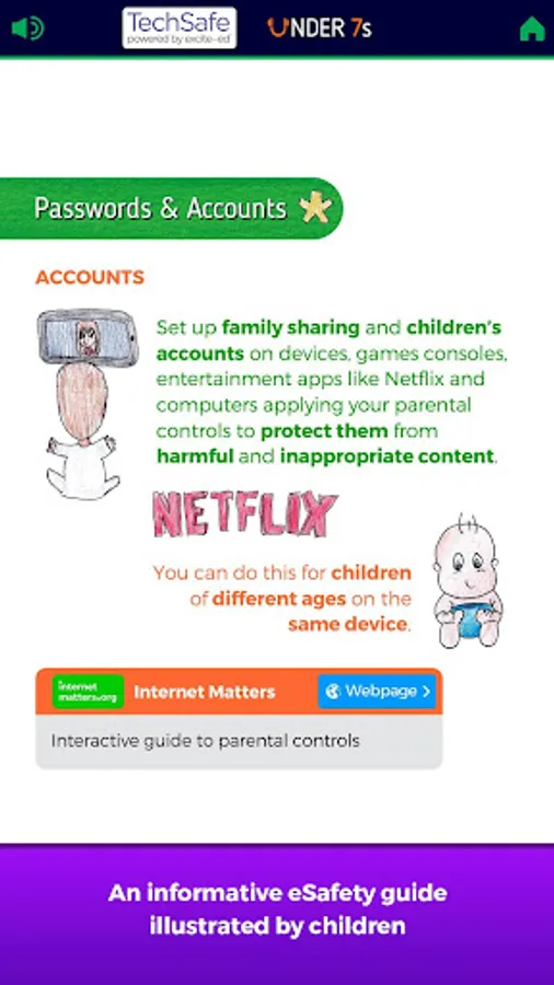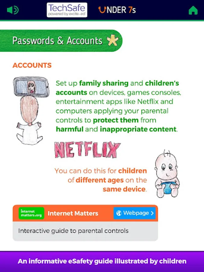 TechSafe Under 7s is one of a series of beautifully illustrated Internet safety information apps by children for parents and carers of under 7 year olds.