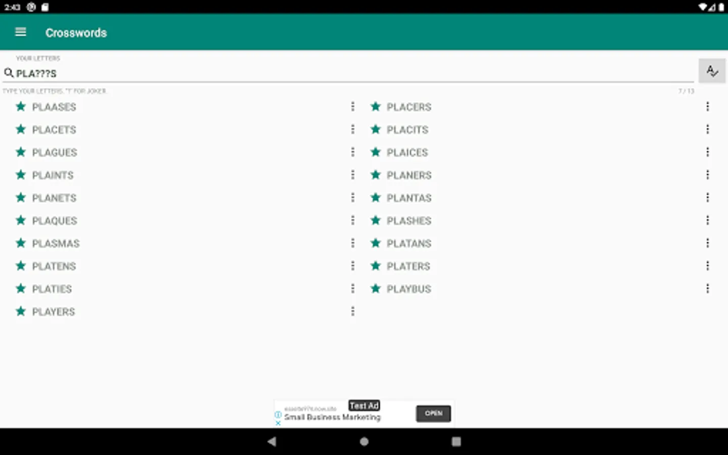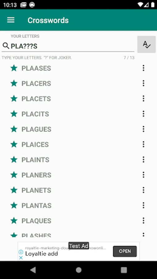 Do you want to find a word up to 10 letters using a wildcard (or 2 if you have rated the application from the settings screen)?