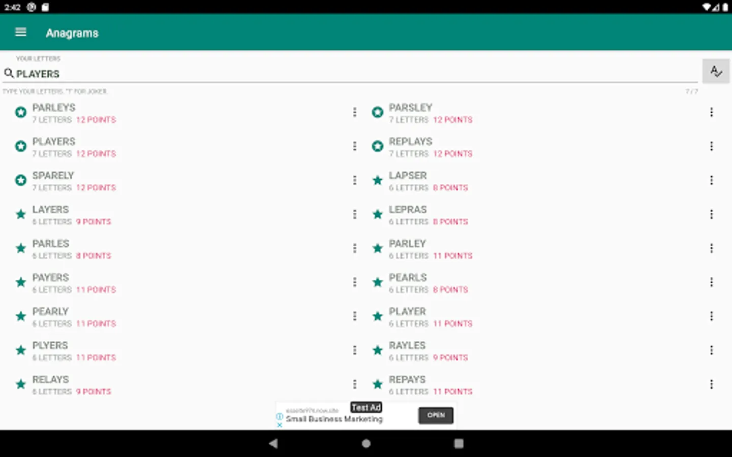 The paid version offers ad-free use with advanced searches on anagrams and crosswords.