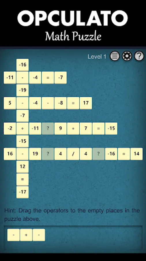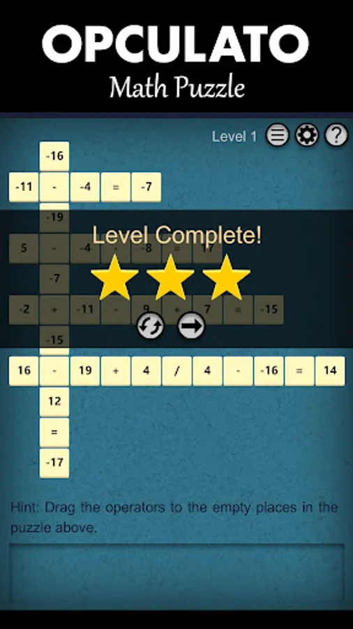 Solve a series of mathematical equations in different puzzle sets by dragging the correct operators to clear a level! Conquer all 100 levels and achieve a 3-star rating for each level to be the best math wizard of all time!
