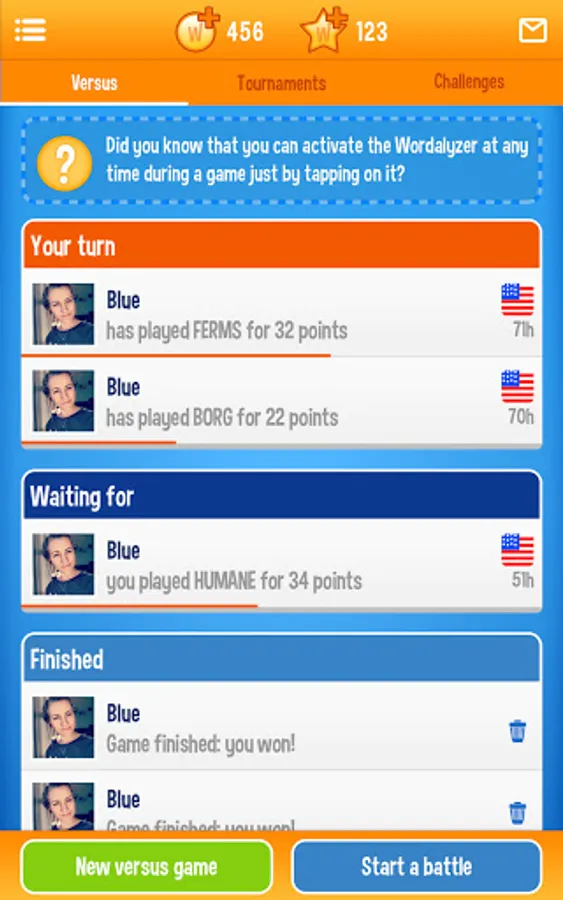 You go heads-up against other random players or start playing words with friends to beat them. Don't make the assumption you are better than they are. This game is like the old word board games found on your attic. If you were the annual spelling champion, this game is the perfect asset for you. Do you love word puzzles? WordOn is a pleasantly addictive word game to take with you wherever you are.