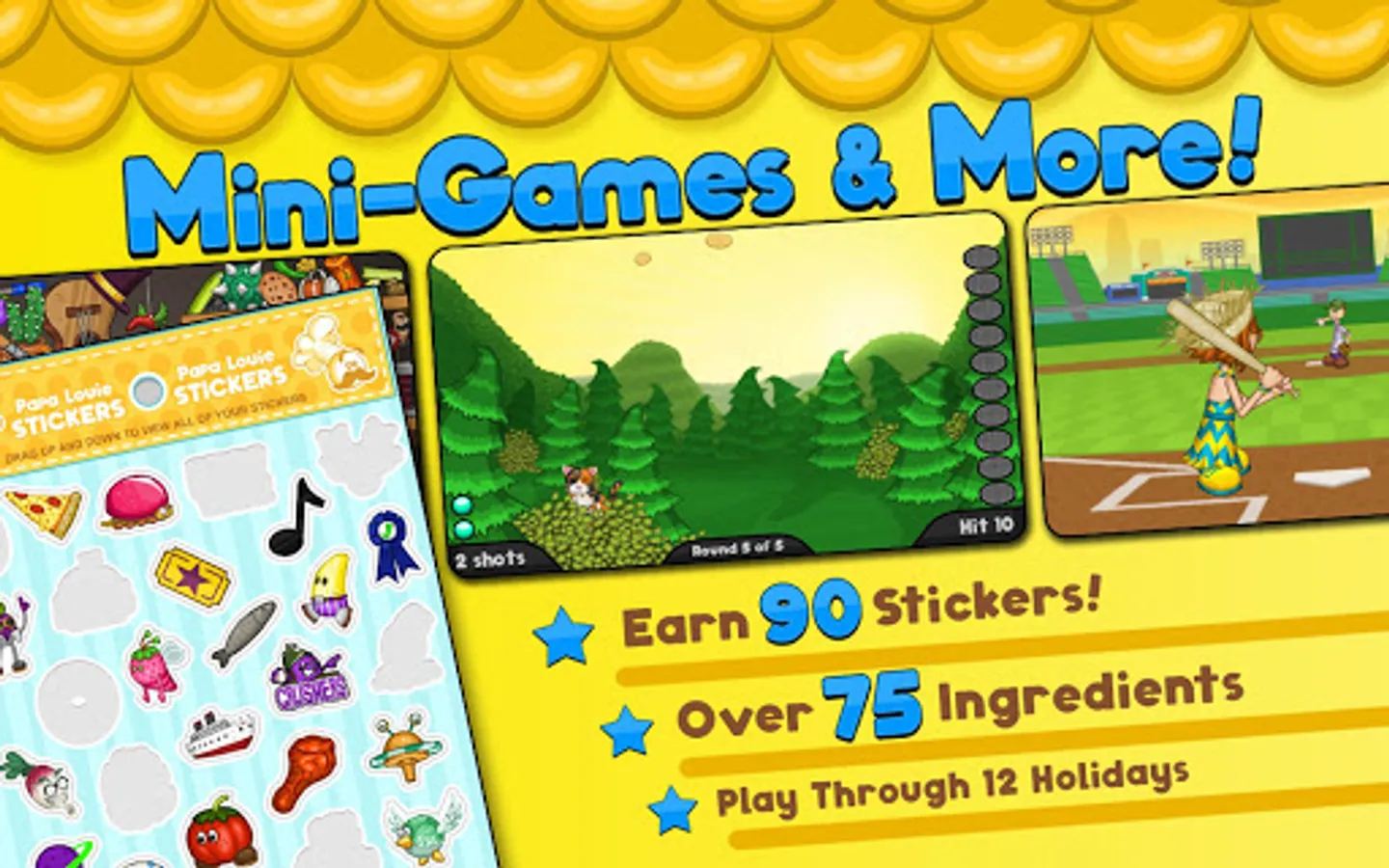 Papa's collection of Stickers return, which you can earn by completing a wide variety of tasks and achievements as you play. Each customer has a set of three favorite Stickers: Earn all three and you'll be rewarded with a brand-new outfit to give to that customer!