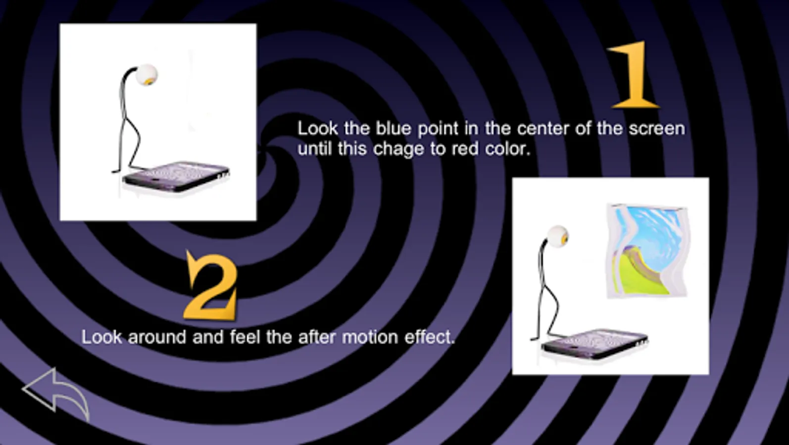 Look the red point in the center of the screen for 30 seconds then look around you to feel the Motion aftereffect.