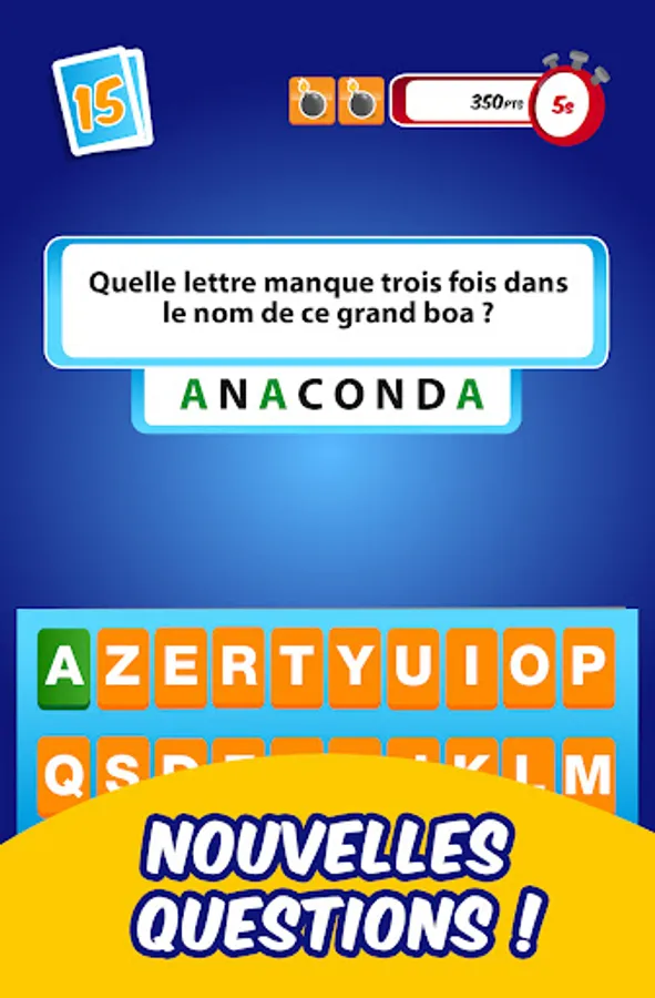 Slam is the favorite game for word lovers, quiz fans and crossword enthusiasts. Have fun playing with all genres, from geography to mathematics, including chemistry... and of course French!