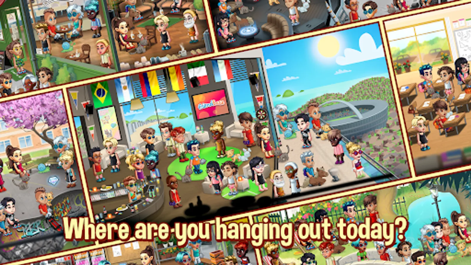 From sports rooms to a spooky mansion, we have it all in our collection of different rooms for you to discover. It is important to give you the option to socialize in as many environments as we can provide.