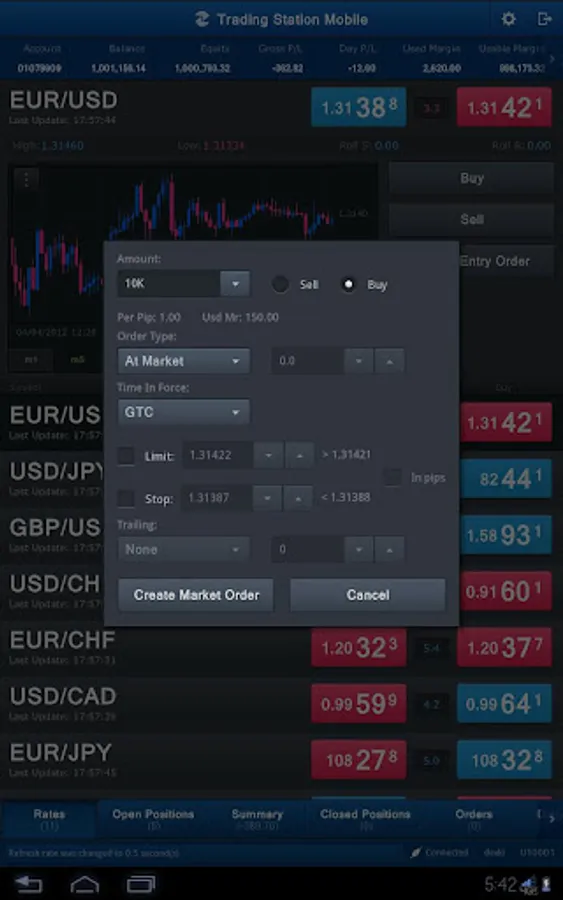 FXCM offers free $50,000 (€50,000 or £50,000) forex & CFD demo accounts to investors who would like to try the Trading Station Tablet platform risk-free. You can register for a free demo from the Trading Station Tablet log in screen by clicking the Free Demo button.