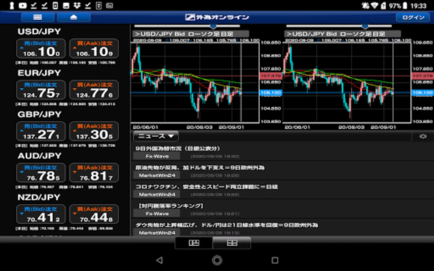 Equipped with functions comparable to PCs, we strongly support your FX trading anytime, anywhere.