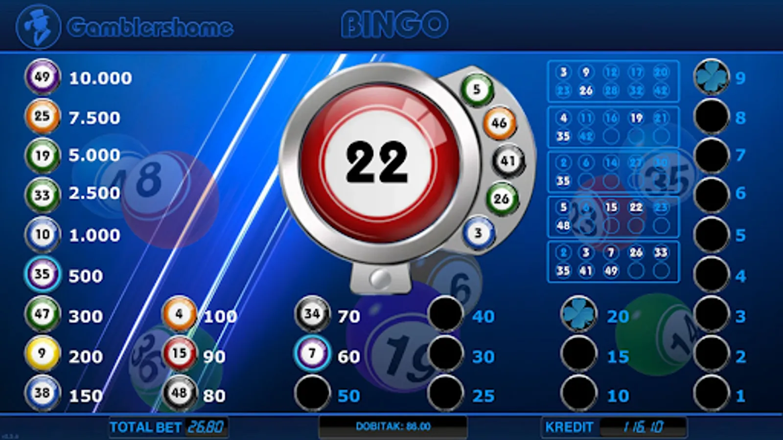 Bingo 6/49 is a game in which player chooses 6 numbers out of 49 in total, where 35 balls are drawn in each game. When the six played numbers are drawn within those 35 in the game, the ticket is winning. Try out your luck.