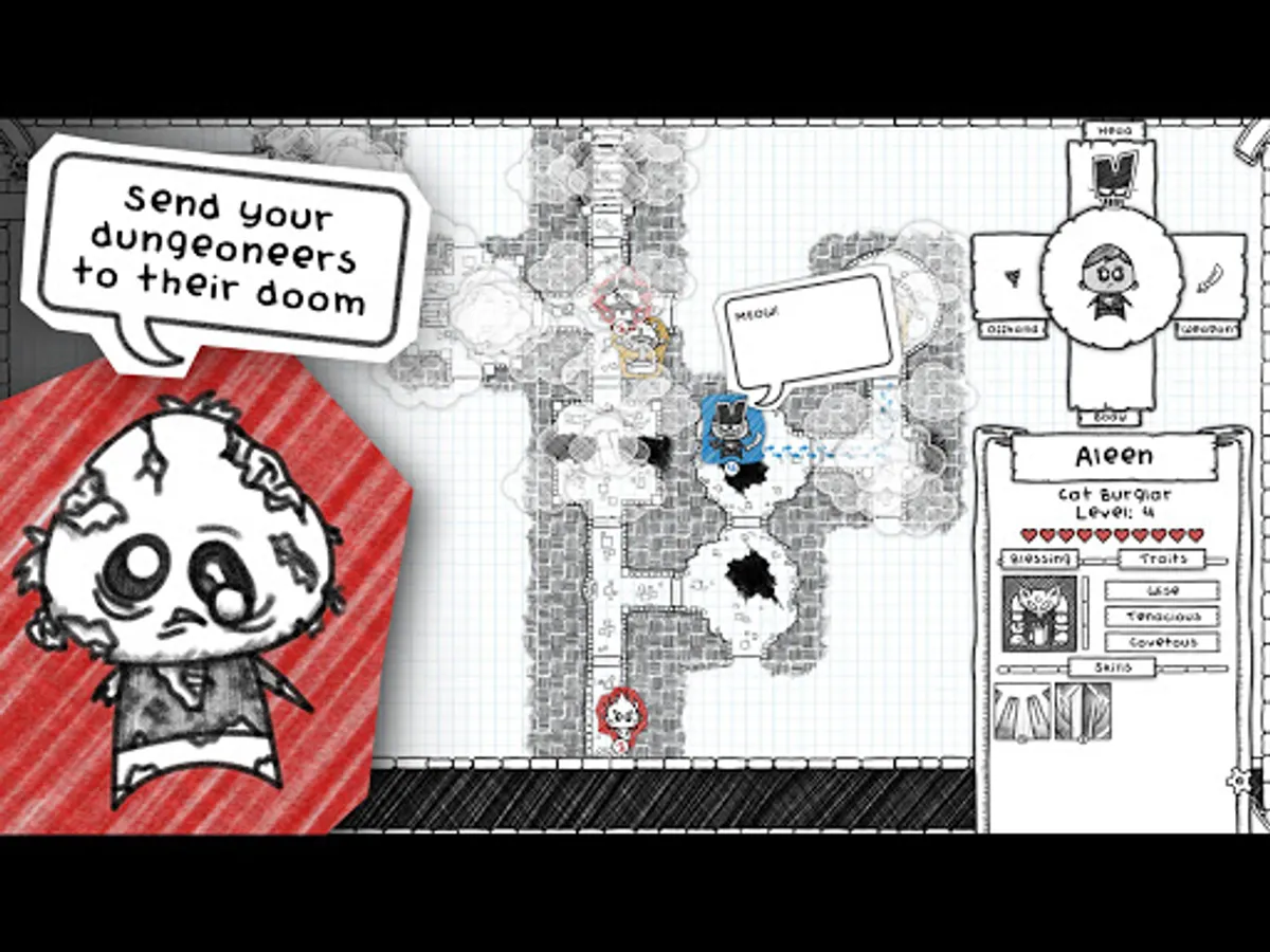 • Entice, coax and bribe your heroes to clear the dungeons you build by strategically placing rooms, monsters and loot from the cards you are dealt