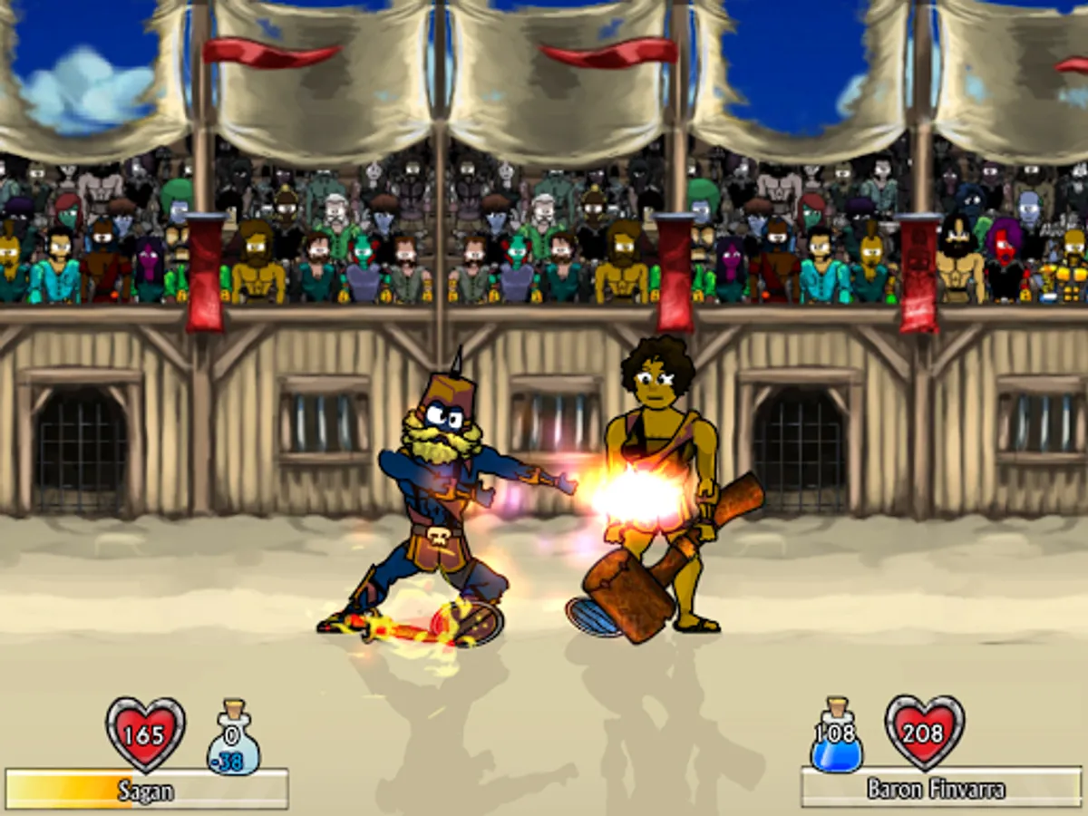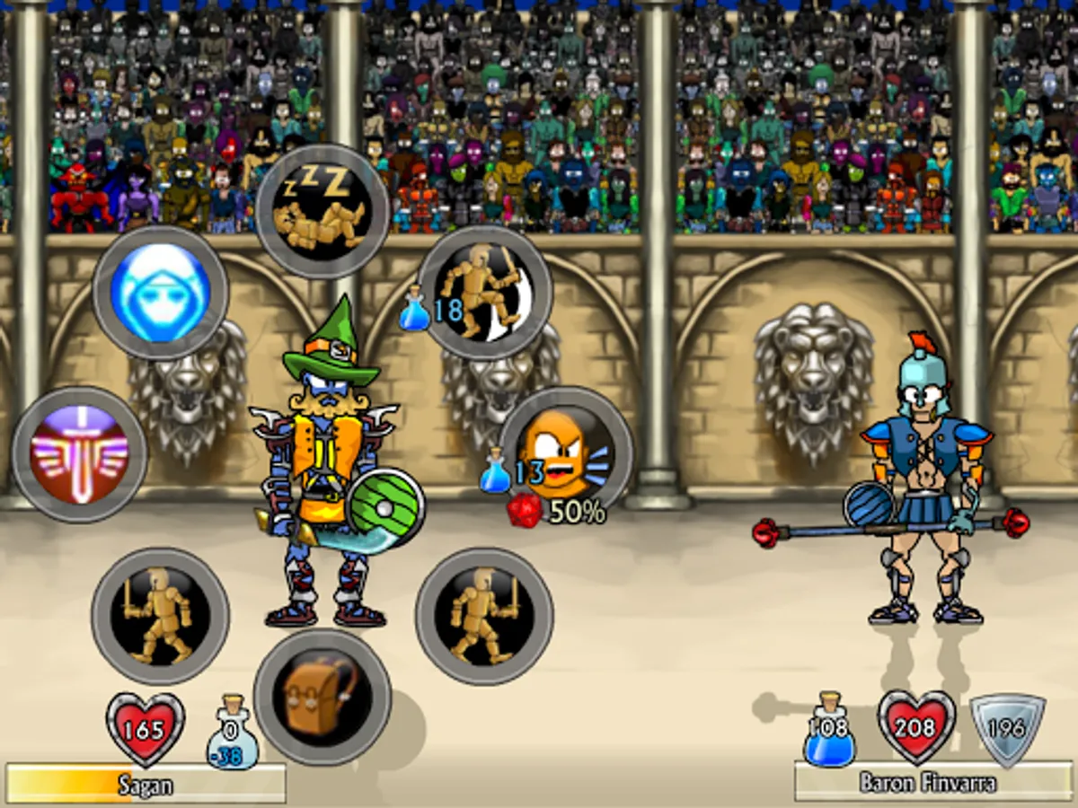 * Wizard or Warrior? Create and level up your gladiator, learning devastating attacks in the process.