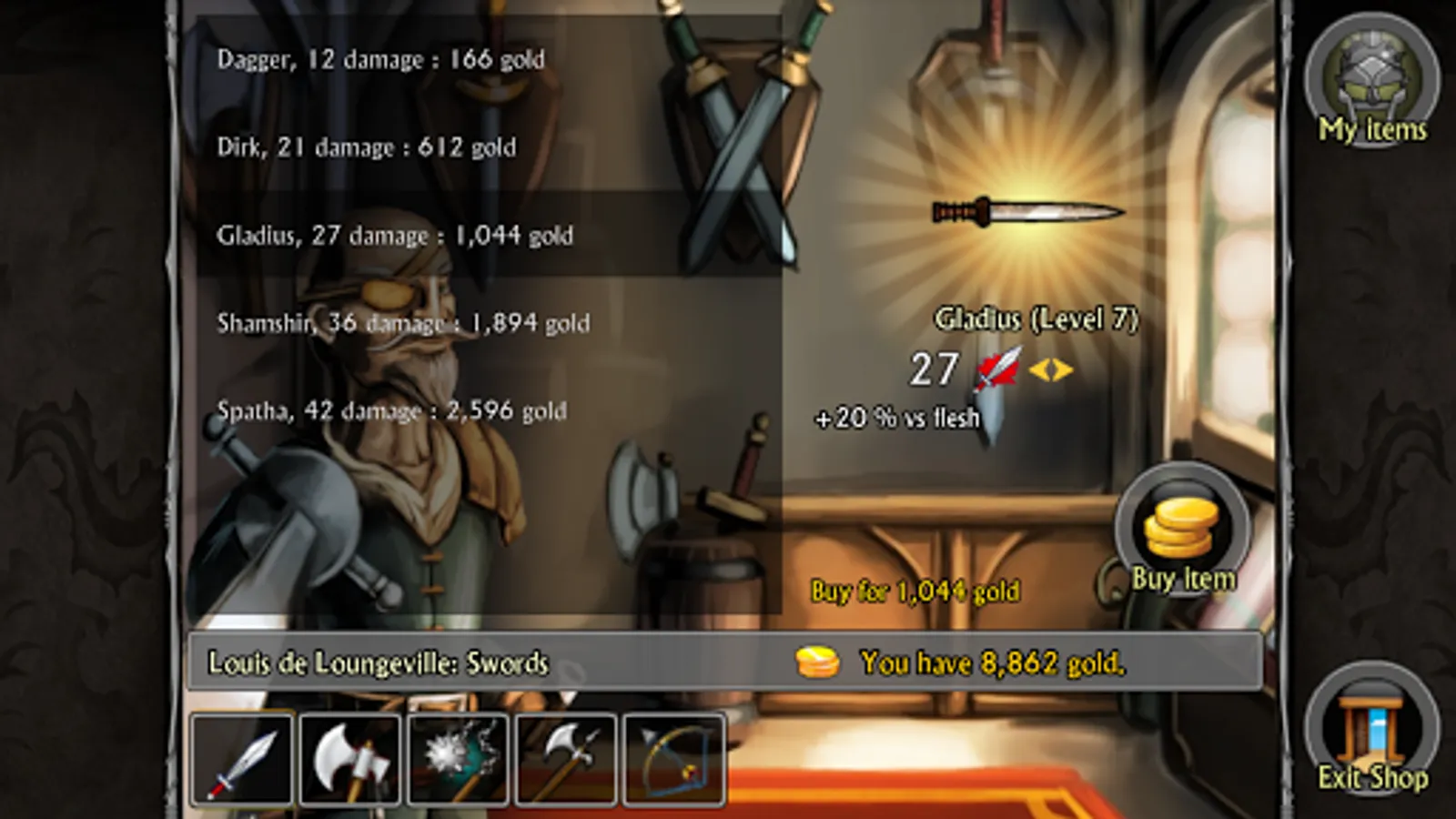 * Wield over 200 different weapons and armour pieces on your journey to greatness.
