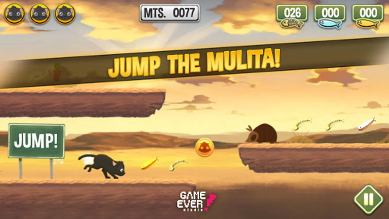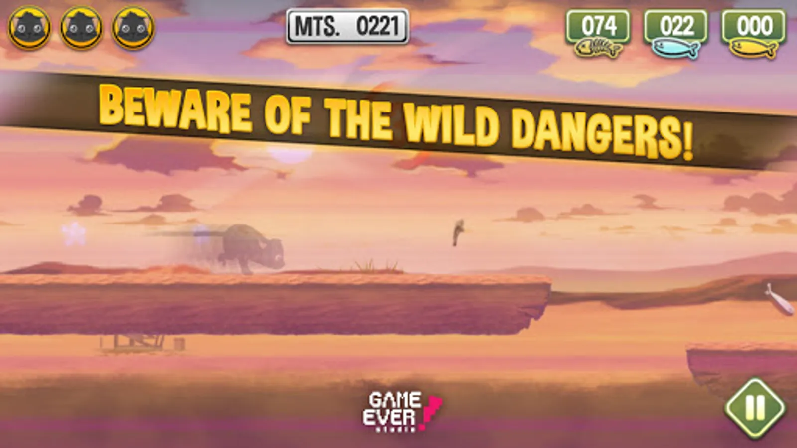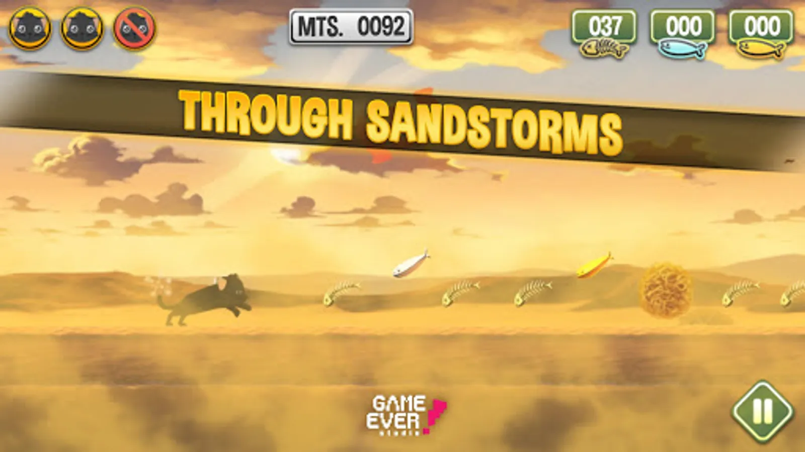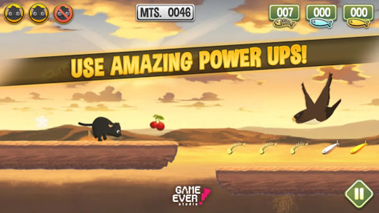Run through an infinite level, collecting fish and obtaining power-ups so you can get the highest score and travel the longest distance, then challenge your friends to beat your score.