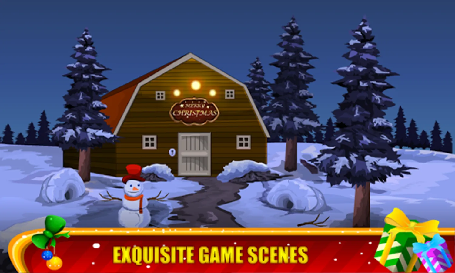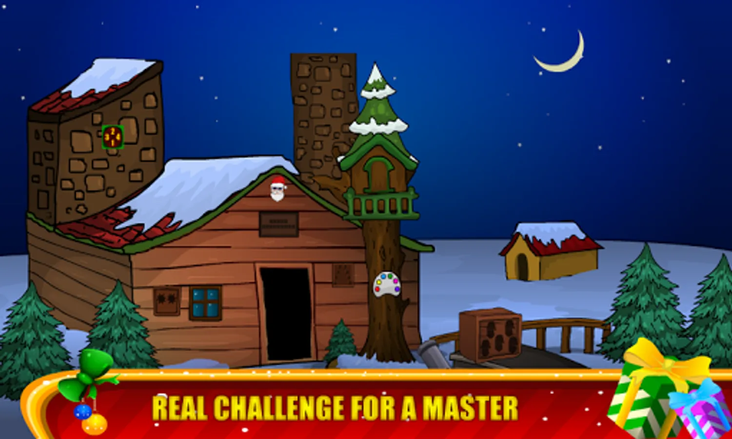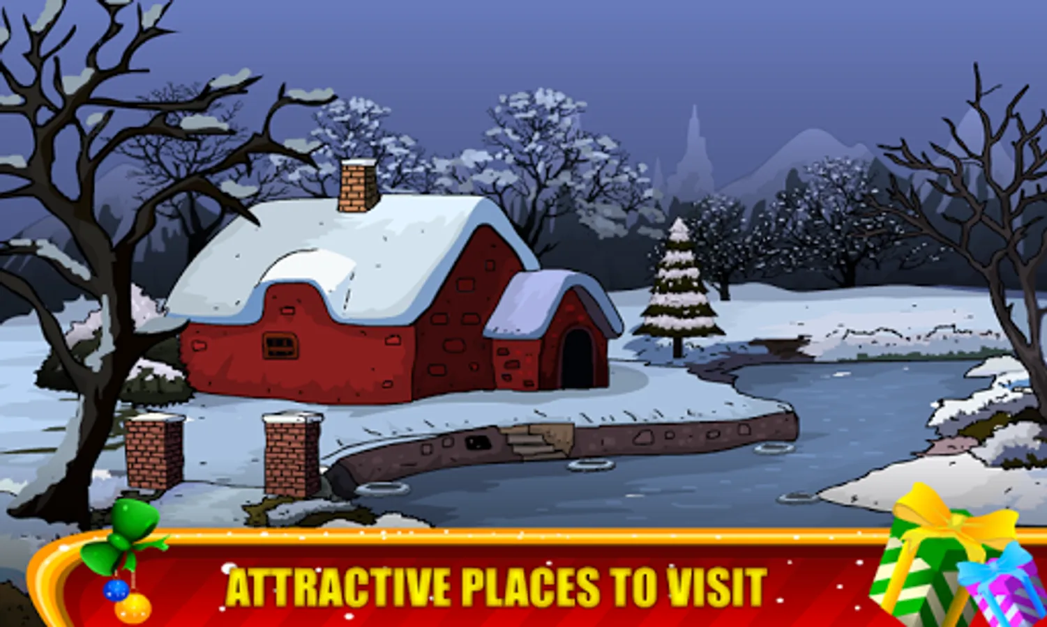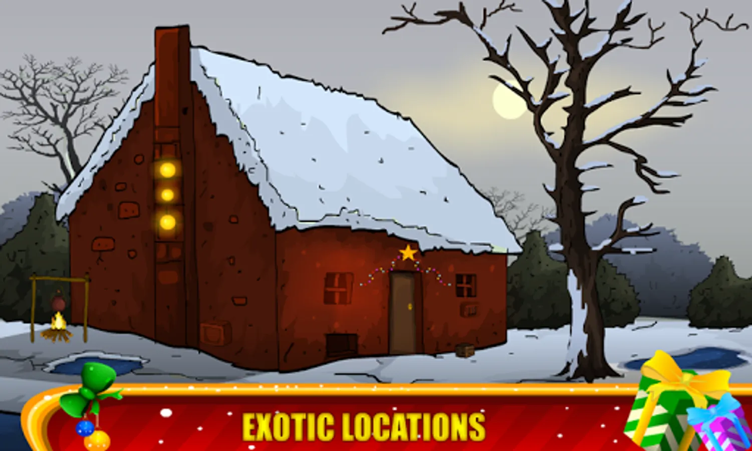 Each level is carefully developed and winter adventure graphics background,gifts,trees,etc Christmas objects,Christmas tree, santa hats, and candy cane! Get into the holiday spirit with all new winter and holiday backgrounds. For fans of all the 50 rooms game lovers.