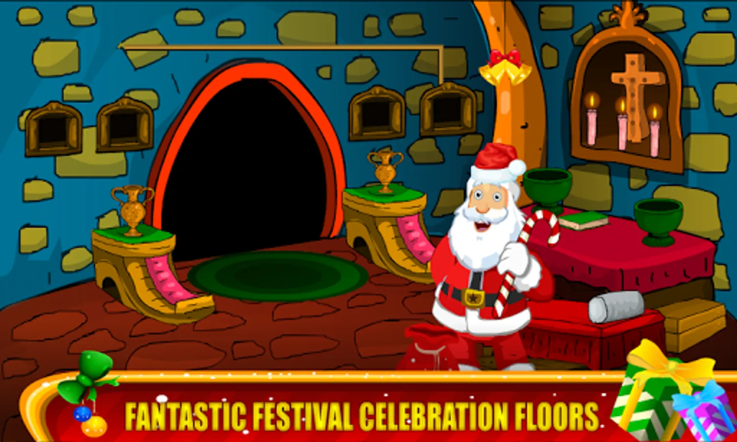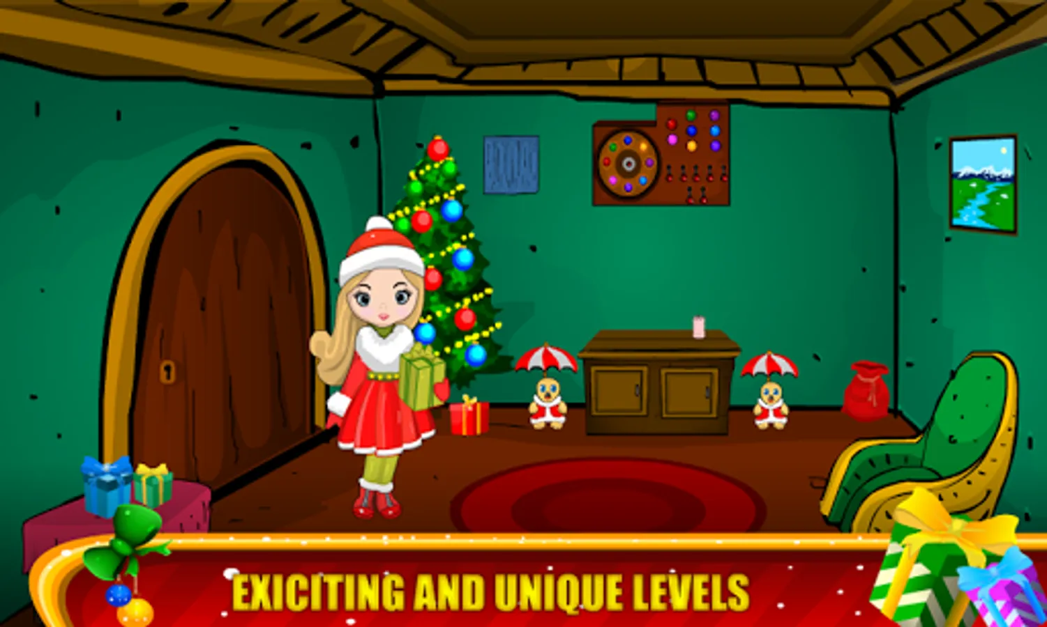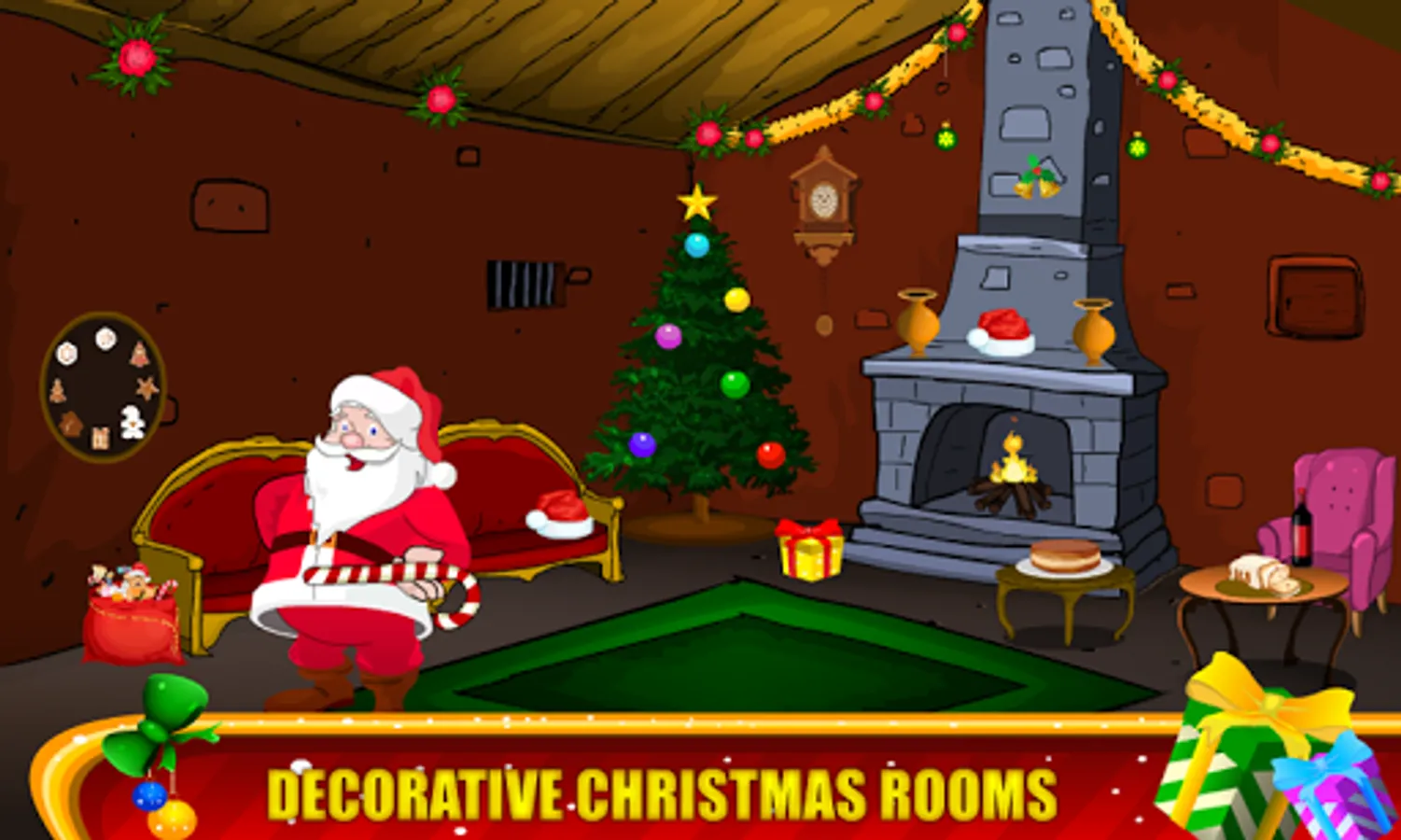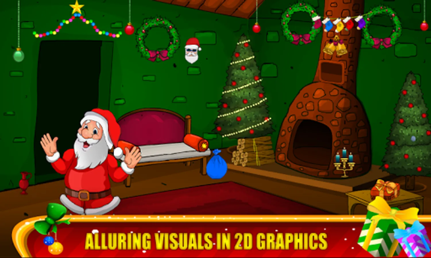 Each level is carefully developed and winter adventure graphics background,gifts,trees,etc Christmas objects,Christmas tree, santa hats, and candy cane! Get into the holiday spirit with all new winter and holiday backgrounds. For fans of all the 50 rooms game lovers.