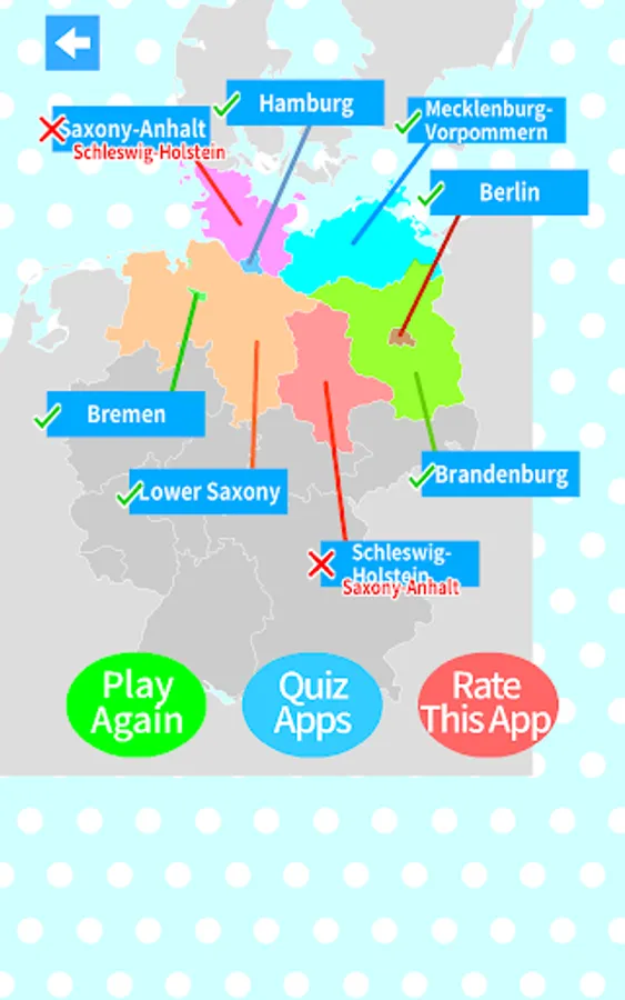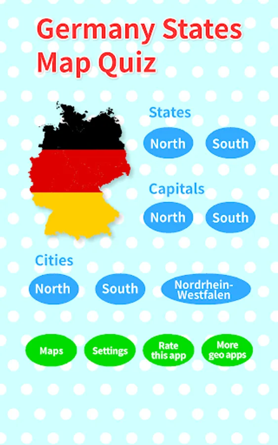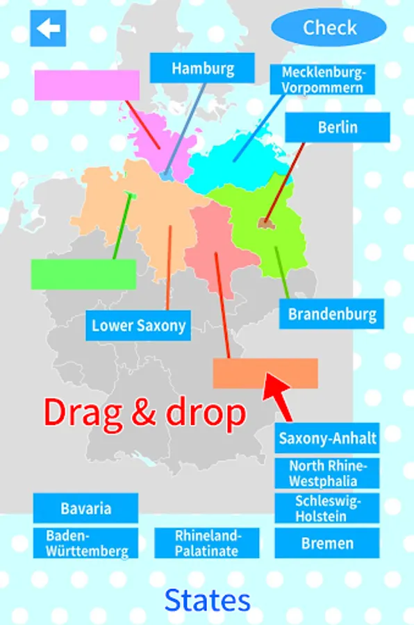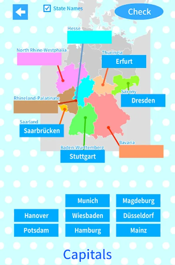 If you want to learn place-names in German language, select "German" in setting screen of this app.