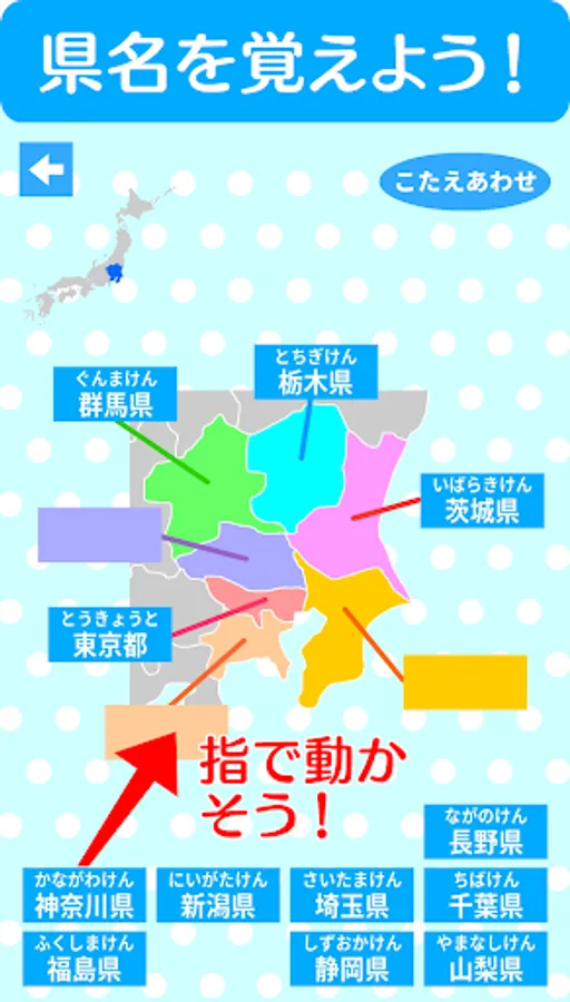 Move the card with the prefecture written on it to the corresponding position on the map of Japan with your finger.