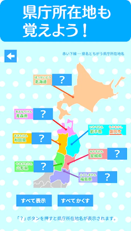 When you press the quiz answer match button, you can see which prefecture you made a mistake in the quiz.