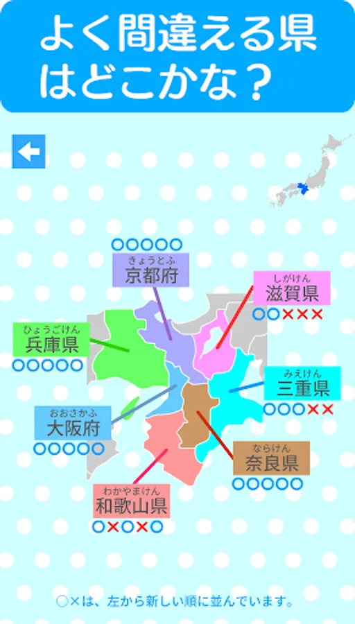 You can quickly find out which prefectures you haven't memorized yet, so let's remember where the weak point prefectures are located on the map of Japan and aim for a perfect score at the next puzzle.