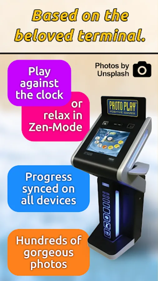 Just like the original on the beloved "PHOTO PLAY" terminal, this is a game for all ages: find four differences between two images – and be fast for a good rank on the leaderboard! With each find you'll be earning golden rings that can be exchanged for new images.