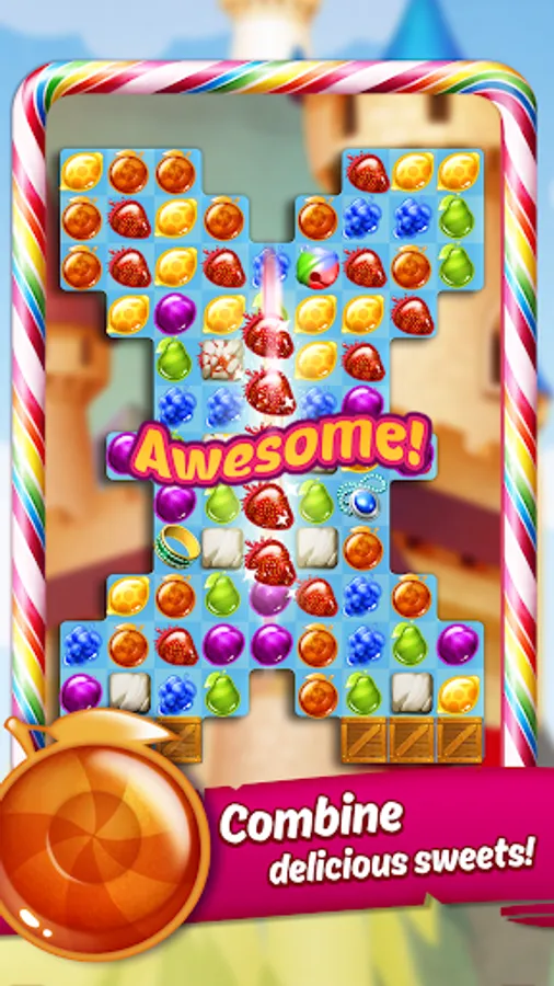 Enjoy this candy game! Join the sweet candy mania! Smash sugar, blast fruit, match 3 gummies, slide chocolate and swap gems to win!