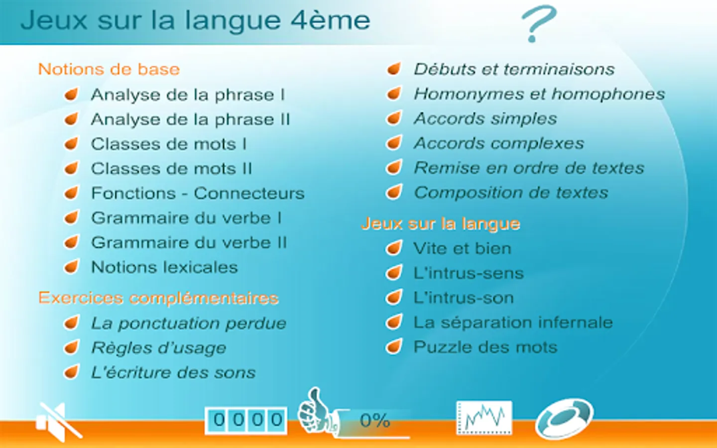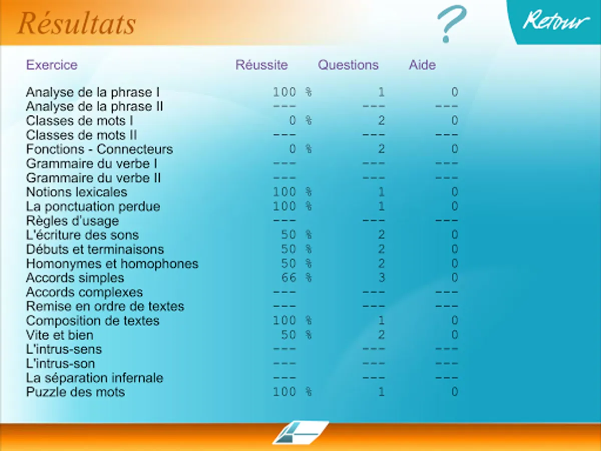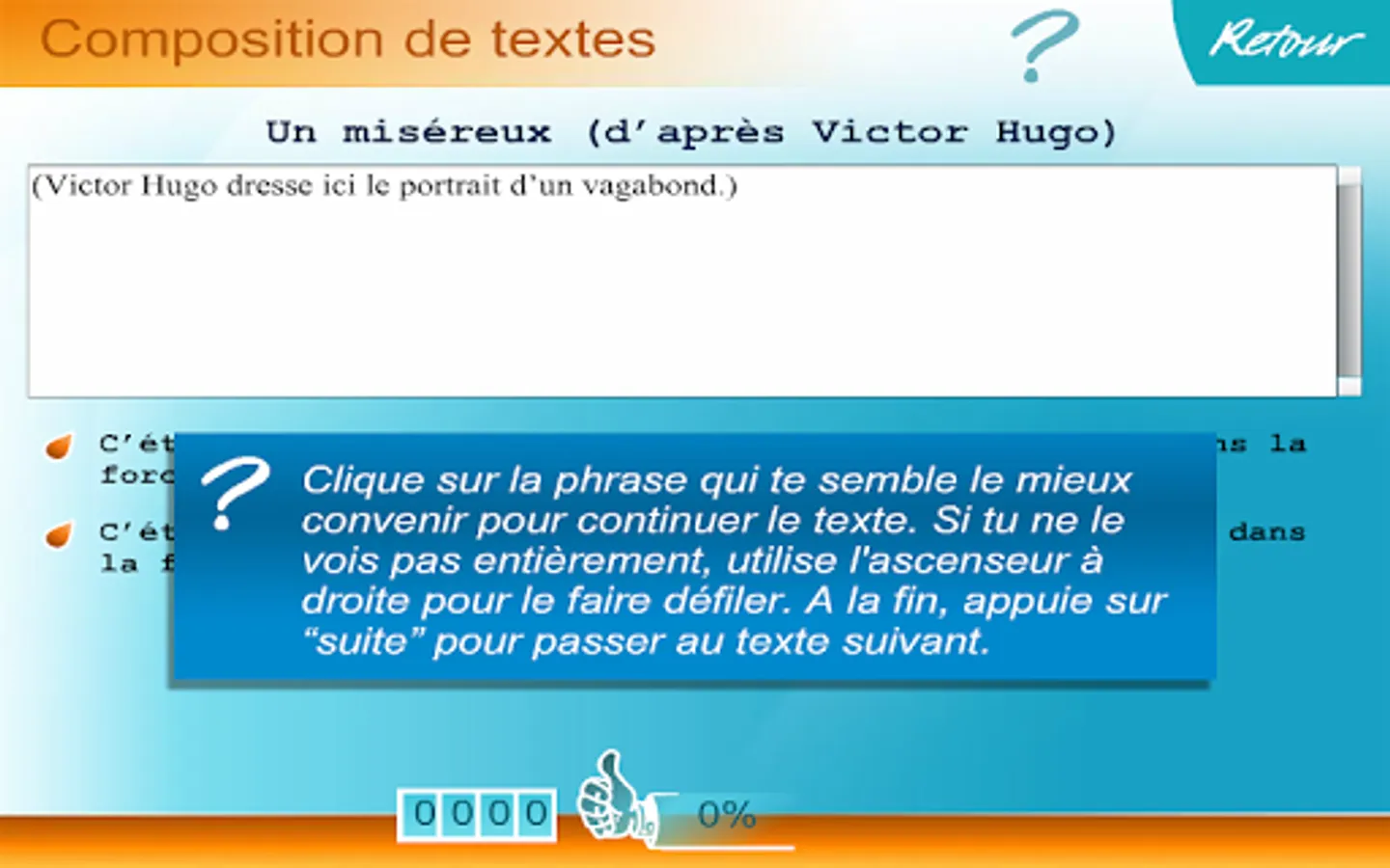 Other exercises allow you to work on reading comprehension as well as formal aspects of written expression (punctuation, syntax correction, consistency of composition, richness of vocabulary).