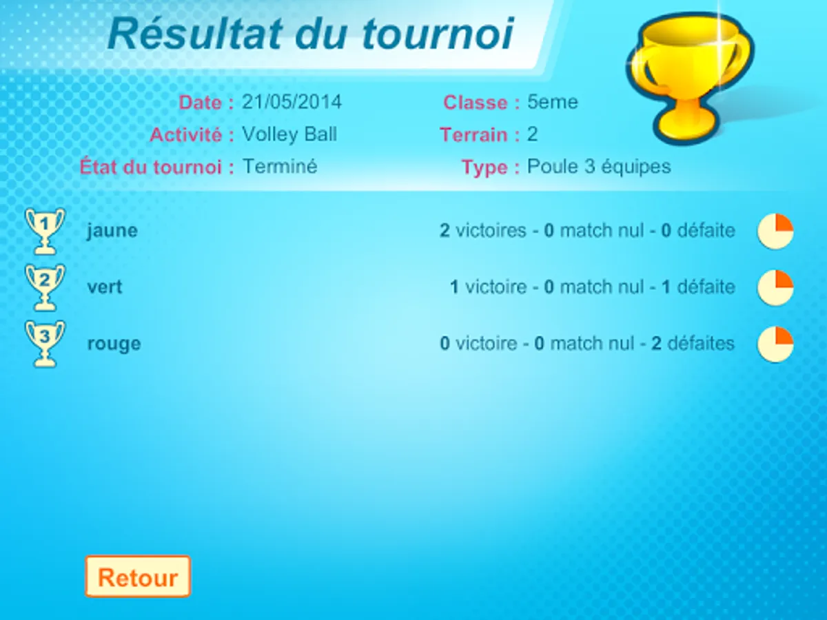 The application "EPS - Tournaments & Poule" is intended for teachers of Physical Education and Sports, teachers of schools and leaders of sports associations.