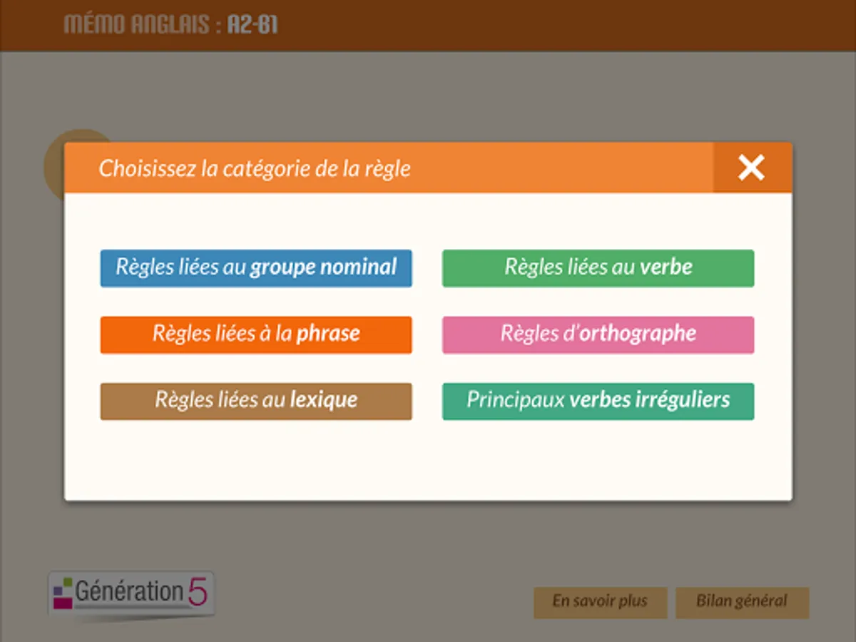It complements the A2-B1 English Memo booklet intended for middle school students, which presents the 64 rules and essential concepts to know to master the English language.