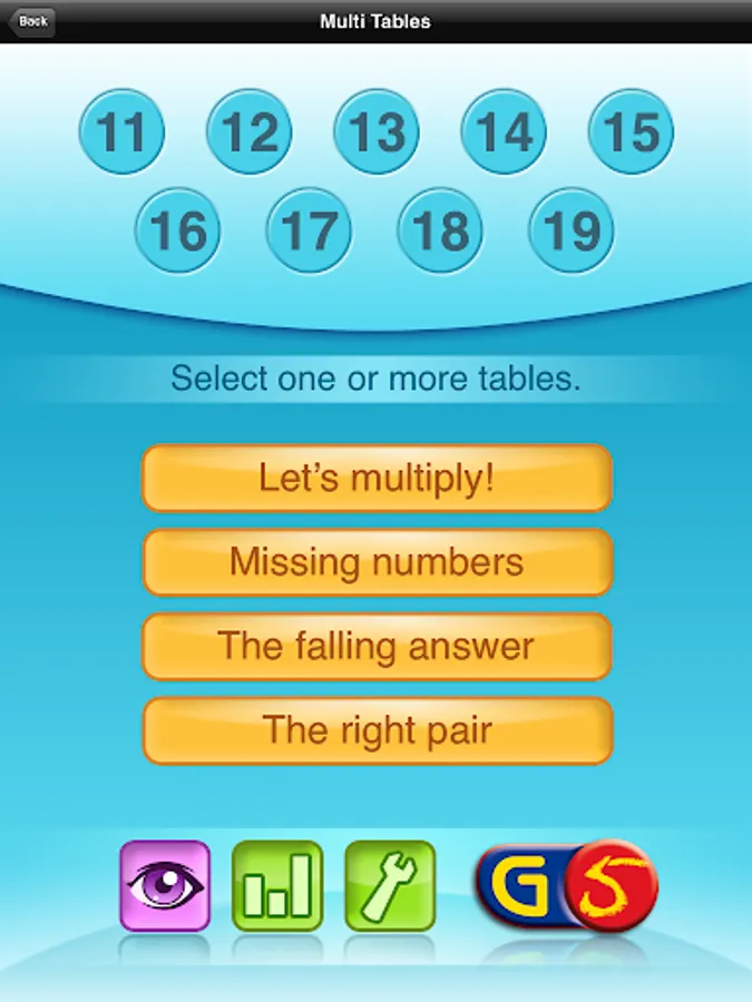 "Let's multiply!" involves basic multiplications for all levels of user. Answer questions in a limited amount of time and begin to master the tables selected.