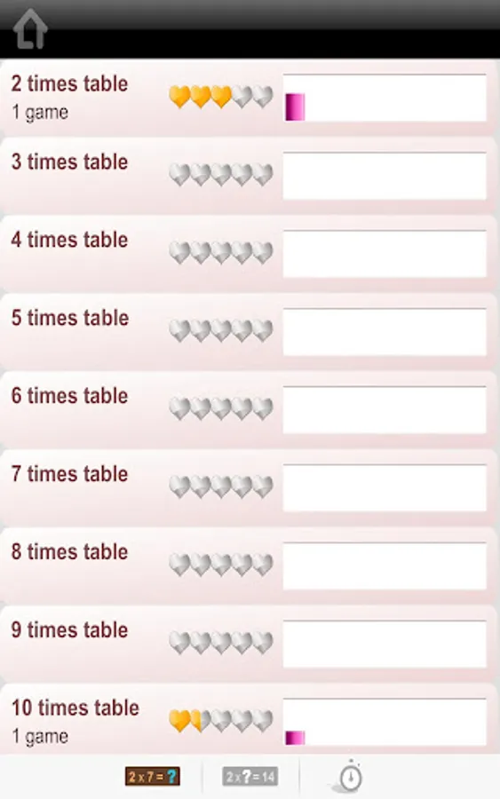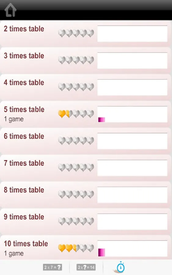 This application is designed to make the task easier. Youngsters (Junior level) use the 2 to 12 times tables. "Senior" level users learn using the 13 to 19 times tables as well.