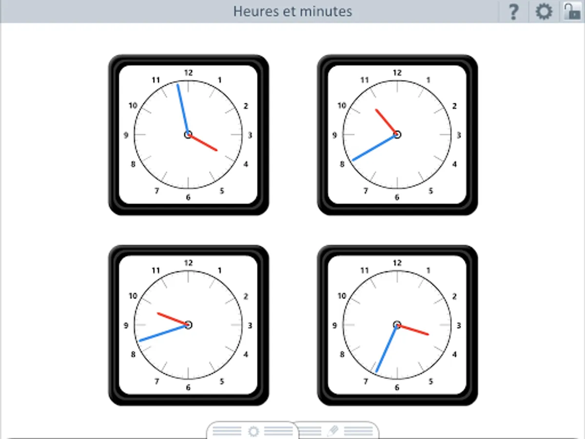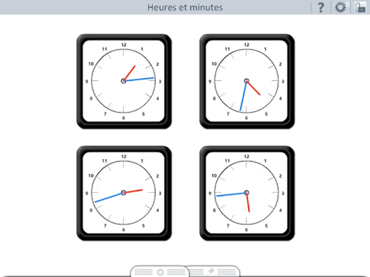 clocks are manipulated by rotating the minute hand or the hour. The needles are of course synchronized. Students can: