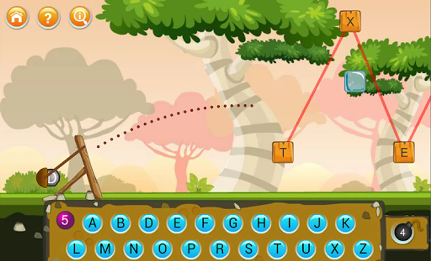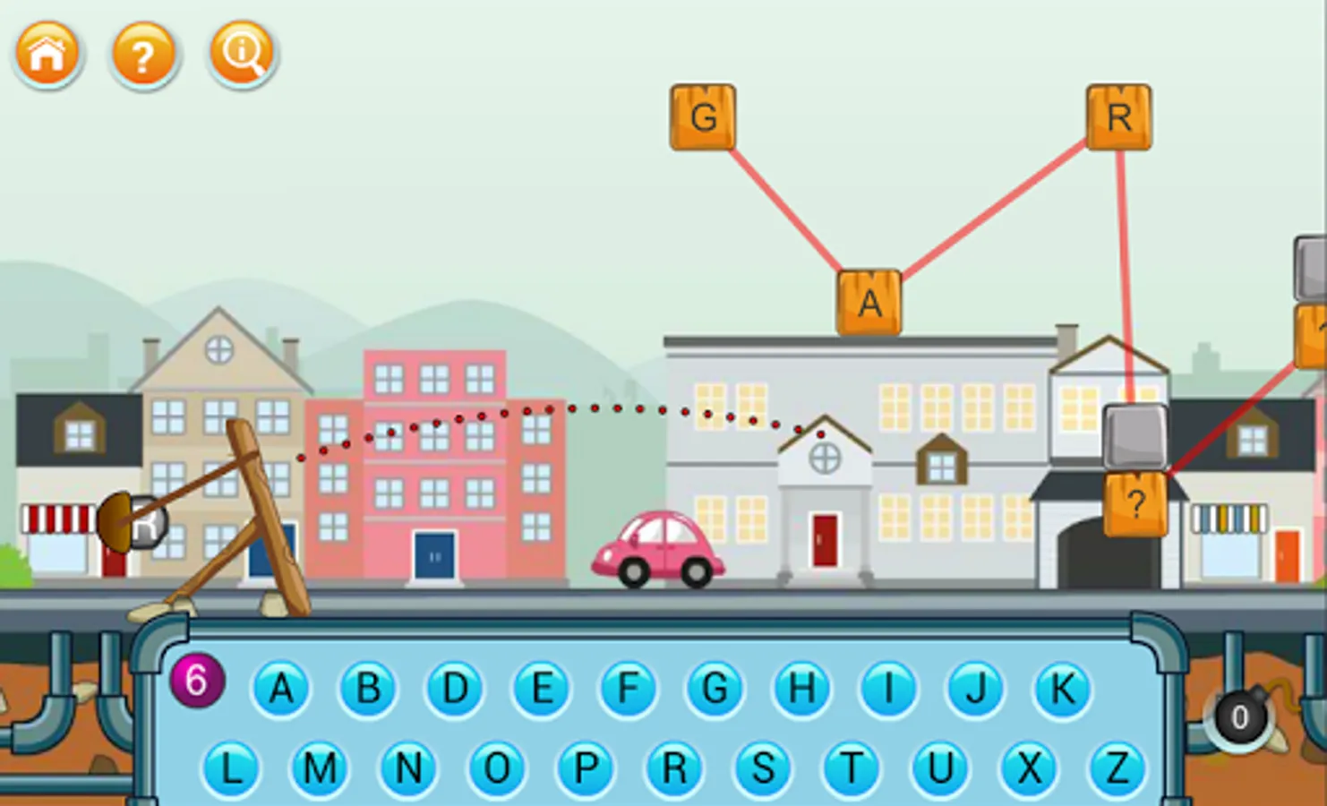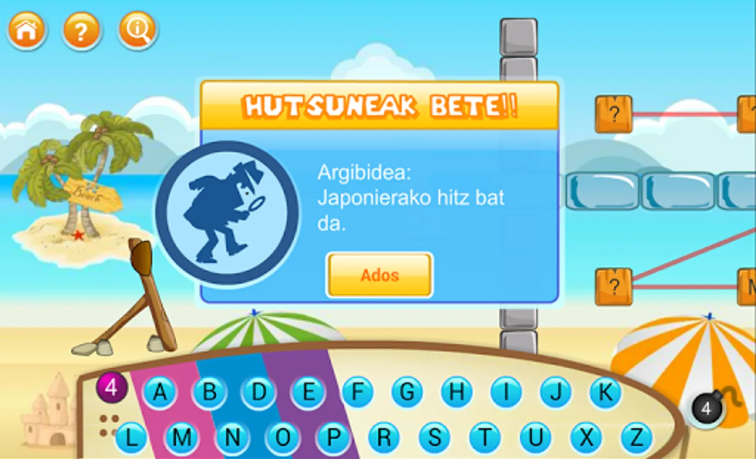 Hutsunez betetako hitzak ikusiko ditu erabiltzaileak eta letrak botatzen dituen Katapulta beat Bidez hitzak Osatu beharko ditu erabiltzaileak.
