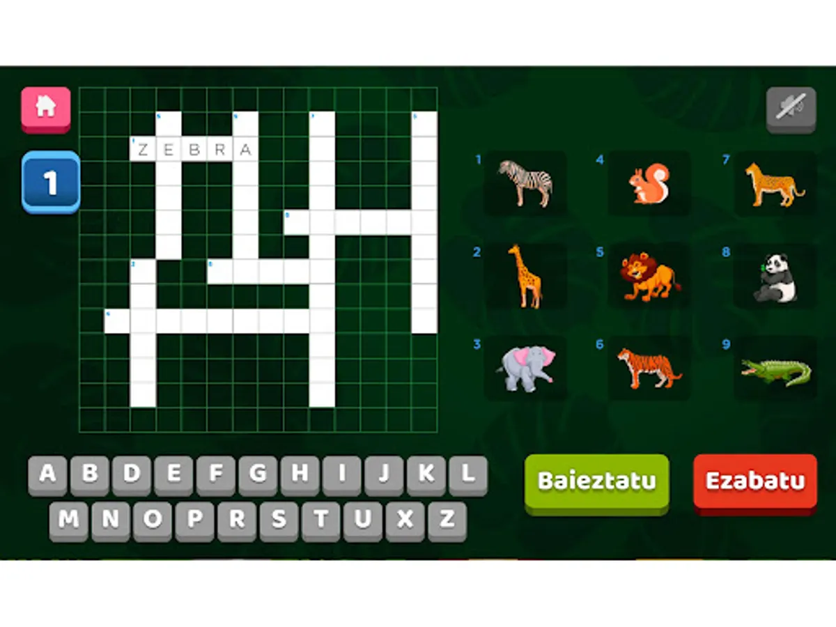 In this game, we will see images of different animals that can be found around the world and, to complete the crossword puzzle, you will have to put their names in the appropriate places. As a helpful note, if you click on an animal's image, you will hear its name!