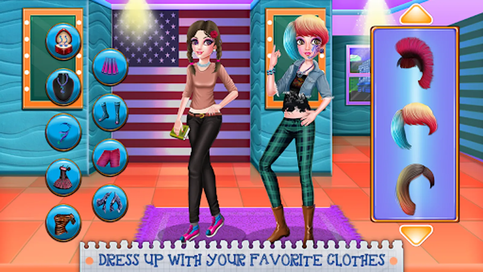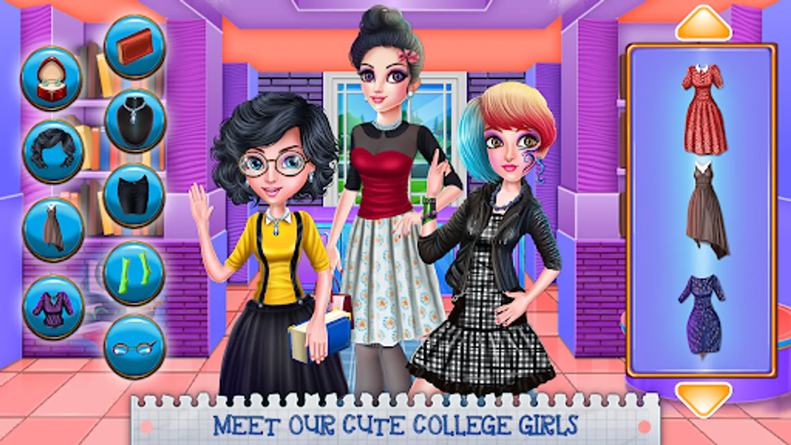 It's important to keep yourself always ready for a fashion show or just for a simple parade in the hallways of your college. In this dress up game, your duty as a fashion inspector will be to maintain the status of these beauty queen girls with fresh and unique outfits. As a group, they have the same goal: to look fabulous and be popular, but individuals they all have different styles and choices. Find a suitable approach for each girl and match their accessories with their brand new aspect. You can begin the game with any member of the squad, but you must dress up all of them. Take a lovely skirt with a crop top, add a vest to complete the whole look. There will be accessories to add like socks and shoes, brand new glasses, fancy jewelry and you could try a new hairstyle as well. You can also match their hairstyle with a lovely dress at which you will add some accessories, maybe some colorful shoes and a bag or a nice pair of glasses. And because each one of your girls is different you have customized accessories. For the artistic one, you will be able to put on a face tattoo, for the nerdy one you might add a bunch of books and for the fancy one you will have special sparkling jewelry. The girls look is up to you and so is the fashion squad rename. Make sure you create a successful team of pretty girls ready to rock off their looks.