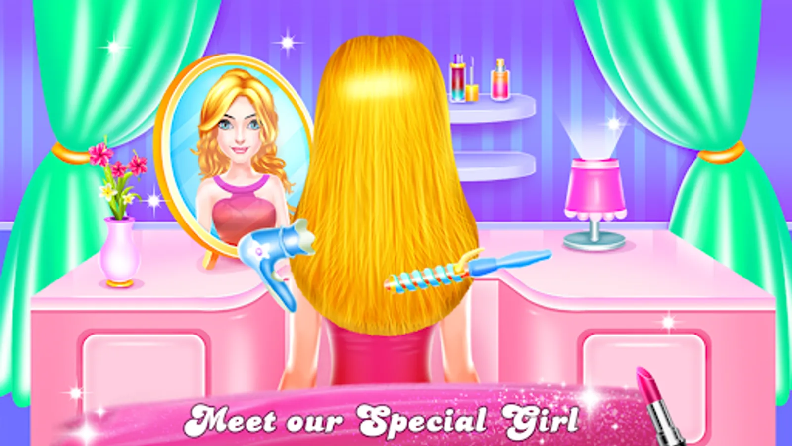 Create a fantastic hairstyle in this special salon hair game, where your imagination and free spirit might help in getting the best look. There are certain things you should know when you want to be fashion and those are all about the details and colors. Merge different styles and find the perfect combo when you are performing spa treatments along with the hair making and the dressing. First, take your girl to the facial spa to refresh her tired skin. The dark circles are all over her face and of course that her eyebrows look messy. You will have to take care of all these aspects and besides having a relaxing face treatment you will also offer a spectacular makeup to highlight her hidden beauty. Continue the challenge with the hairy part. Here you will choose which of the hairstyles you will perform and how you will accessorize it with sparkling jewelry. Now let's go to make some crazy looks. Spray the hair to be smooth and untangled then you could cut the parts that don't belong there. Wash the hair and apply some moisturizer. You might want to change the hair color too. Use the professional devices to obtain the wished style, either is curly, straight or braided. Have a good time creating colorful hairstyles in your hair salon. All that left is to put on a fancy dress or a casual outfit and you are done.