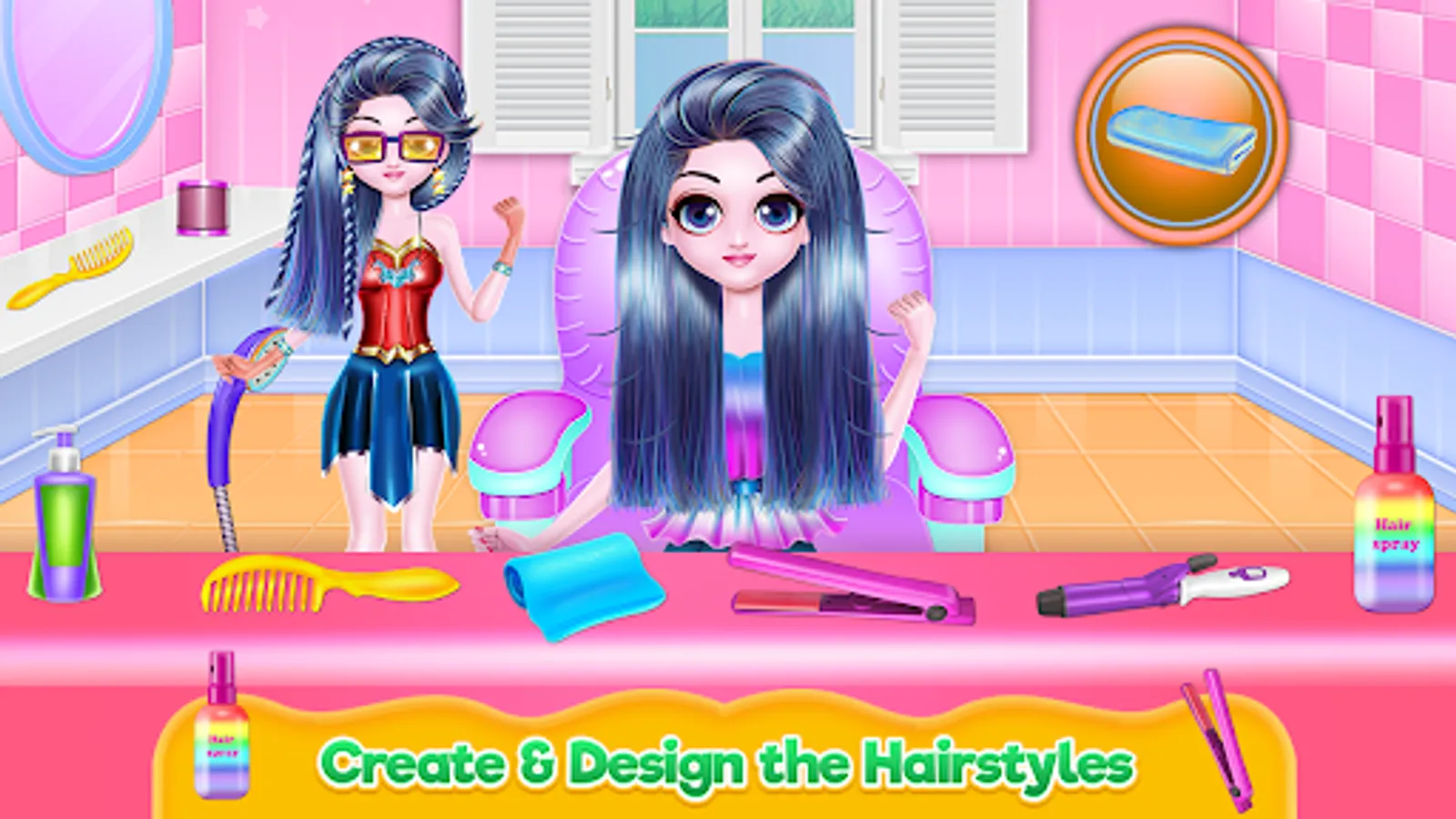 This girl game will lead you to another kind of style, the one that is inspired by the ‘cosplay’ trend. Use your diversity and do your best to please this girl in your hair salon. Get a nice haircut to fit your outfit and don't forget to add some accessories to personalize the final aspect. Take her in your private room and start doing those miraculous customizations. Wash the hair and make it shiny, choose the haircut that would be more suitable for her. You have the chance to choose the kind of hairstyle you want to perform, or if you want to try more you are allowed to. Follow the instructions and you will get exactly the one you asked for. Either is curly, straight or braided hair, make sure you fit the hair with the outfit you are going to create. Finalize the process and move to the fun part where you are going to play with colors and different styles. Merge textures and find the outfits that are prepared for this girl. There are many clothing items you could combine and even more accessories to add. Get those heels and don't forget the jewelry. Adopt a positive attitude and create the desired makeup in this girl game. Become a real fashion designer and practice your abilities in creating stunning looks with this hair salon game.