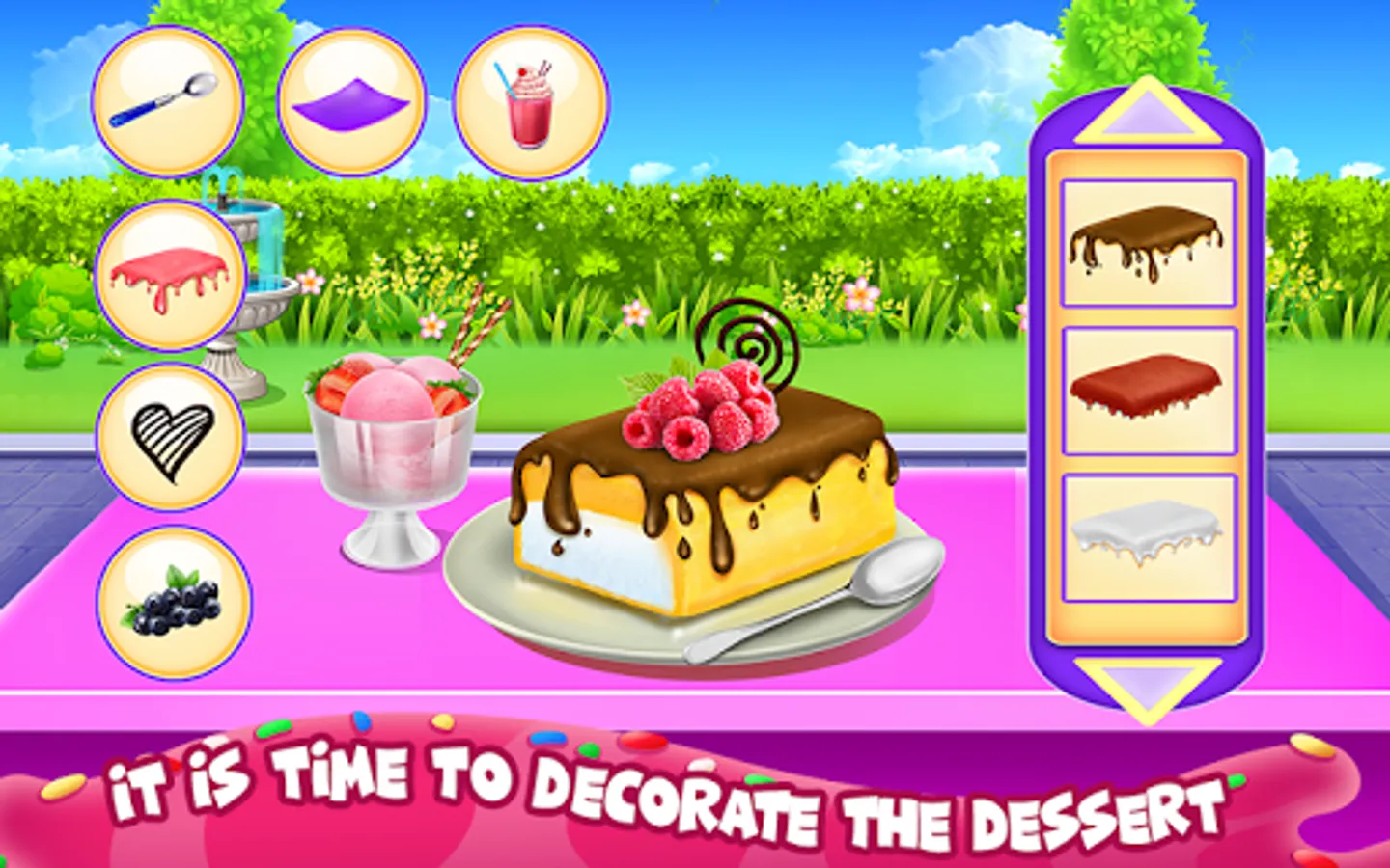 Choose to play this cooking game where you will have a lot of fun accomplishing all these culinary challenges. Not only that you will bake, but you will also have a training in different domains that combined have as the final result a delicious dessert. In order to make that yummy cake, you must go through other phases. Begin with the part where you go to the supermarket to purchase all the required ingredients for your bake. Find the items from the shopping list, pay for them and come back to the kitchen where another task awaits. Here you will prepare the place to be a proper environment for a good cooking. Perform cleaning activities and make sure that each part of the kitchen will be washed. The floor is a mess and you must collect the garbage as well as the wet spots. There is spider web spread all over and the windows and the fridge are full of dirt. Erase any signs of grime and move on to the baking step. Here you will combine ingredients and mix them together in different ways. Don't miss one ingredient from the recipe because it could ruin your dessert. Place the dough in the oven, let it be done and then take it out so you can decorate it as you wish. Use multiple colors while you put decoration items on your dessert. Fruits, glazes, sprinkles, yummy details and tasty looks; these are few of the final decorations you will add. Arrange the last details and try to have an eye-catching plate of sweets.