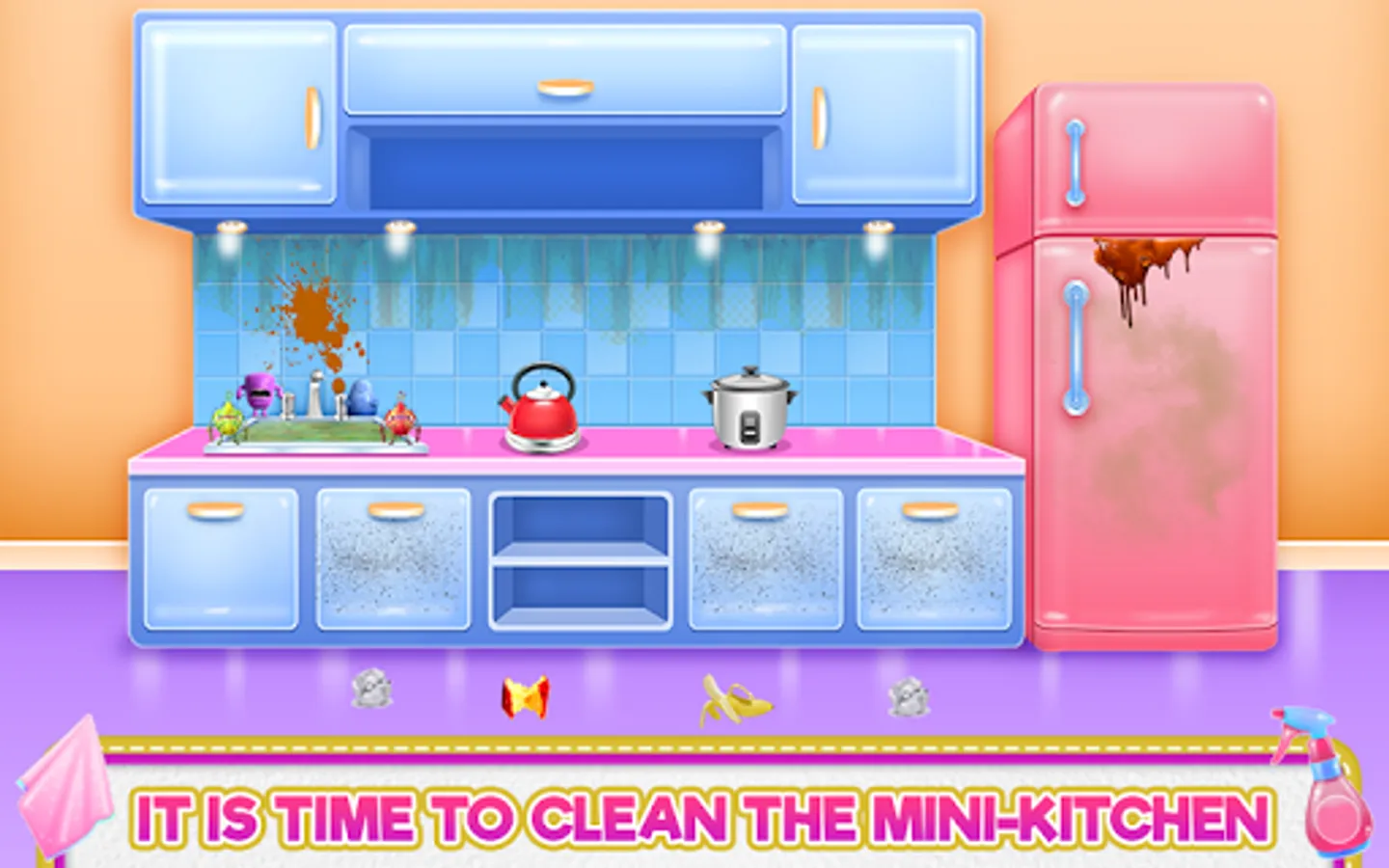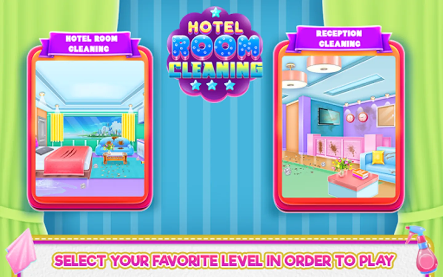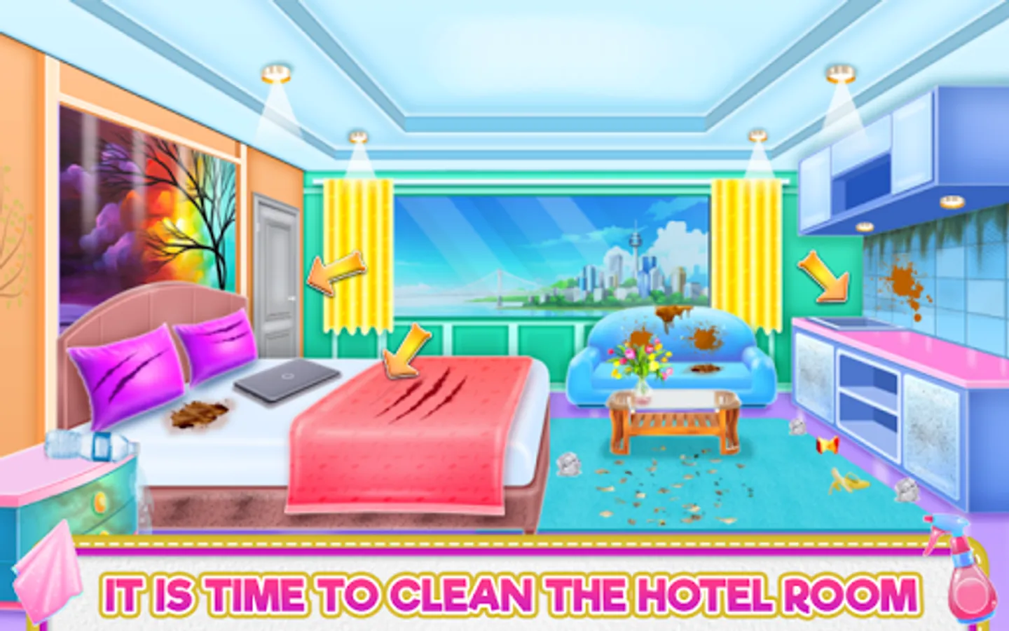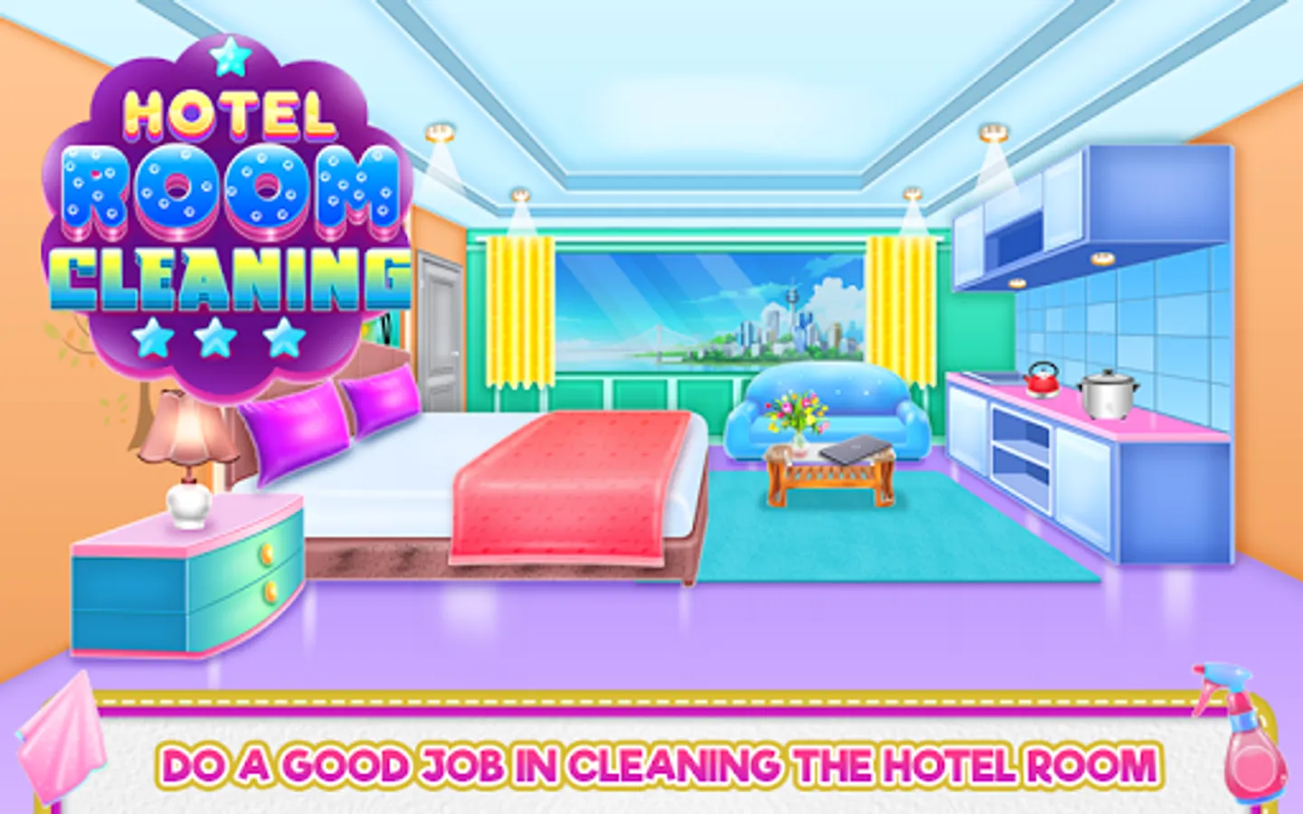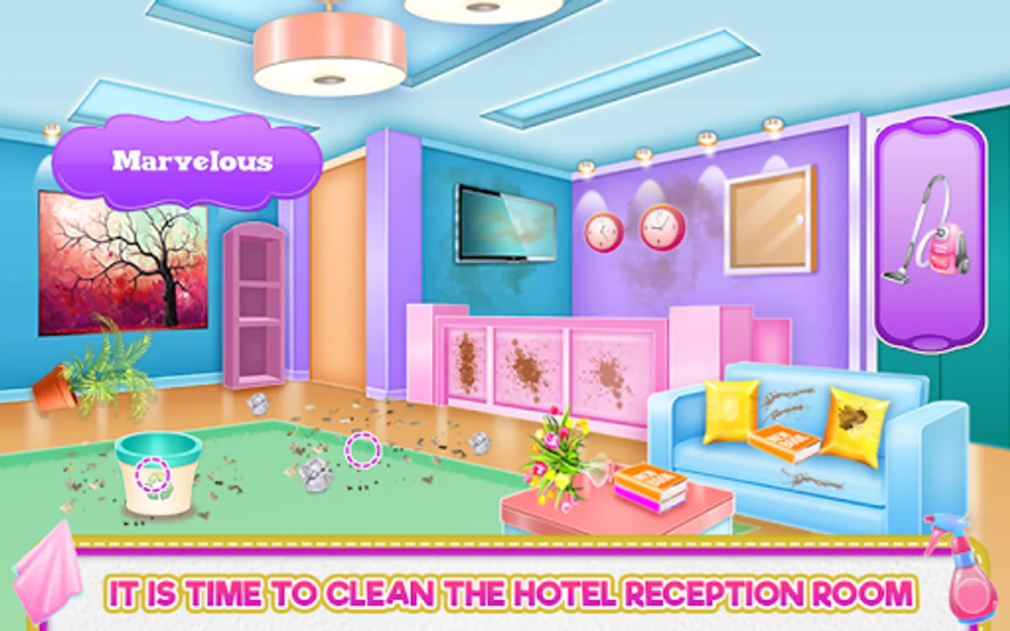 Another provocation that we would like to present to you is the one where you are a hotel manager that needs to look after his business in order to not stain his reputation. Your job in this cleaning game is to make sure you get rid of this mess trying to refresh the design of these hotel's rooms with some tricks and different styles. First is the reception room and then you will have to make sure you clean one of the hotel's room. The other things you have to do are: to get rid of the garbage, to collect it and place it in the trash can, to wash the carpet and make sure you don’t see any footprints over there, to wash the tv and then to wipe it, to erase the spider’s web and the dust. There are a lot of stains you need to get rid of and in order to clean the place you will use different devices like a vacuum cleaner or the special spray with that napkin. Once the reception is done you will go to the room to ensure that the standards are accomplished for your level. Get those stains away and clean the mini kitchen with proper tools. Equip it and place the missing things in the right spot. The bathroom needs your touch too. Wash the bath tube, refresh the toilet and do not forget about the sink. The walls and the floor must be sprayed as well as the mirror. In the room there are many things that needs to be repaired and you will use your already gained skills to do as it says. Now you can clean like a professional anywhere and your work will be rewarded.