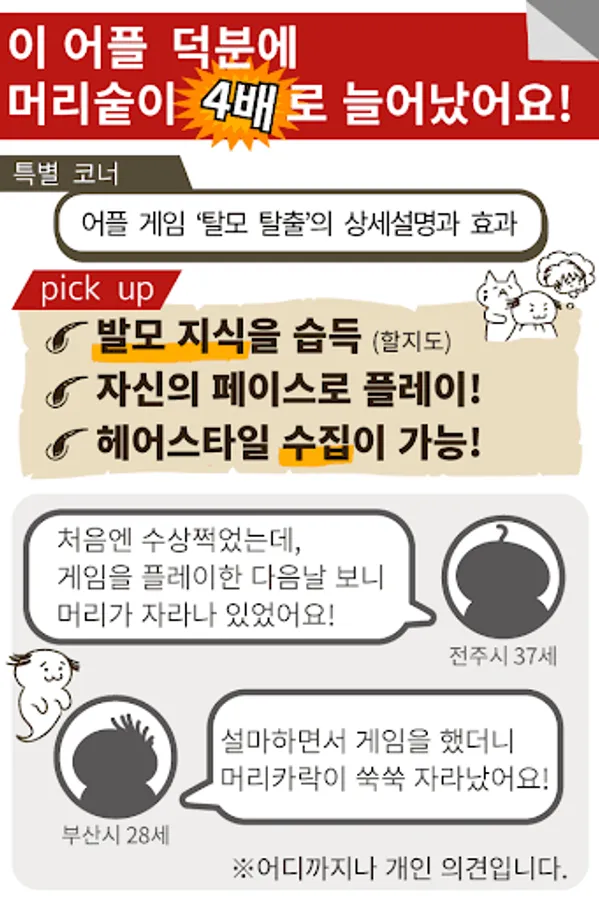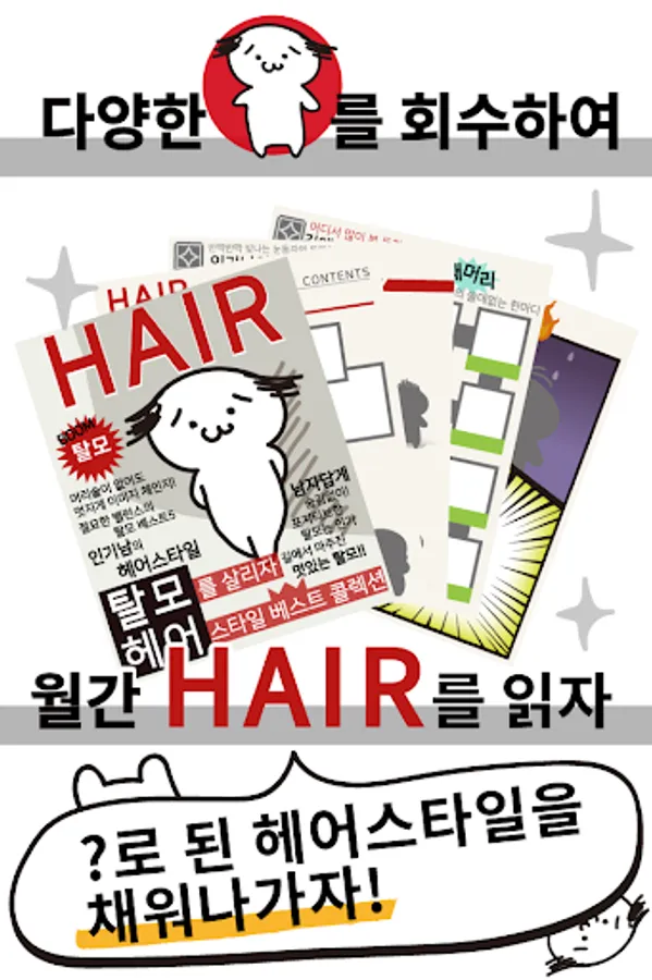 평소 탈모에 관심이 많거나, 탈모에 공감하시는 분들...귀여운 이모티콘 캐릭터의 탈모 탈출을 도와주세요!
