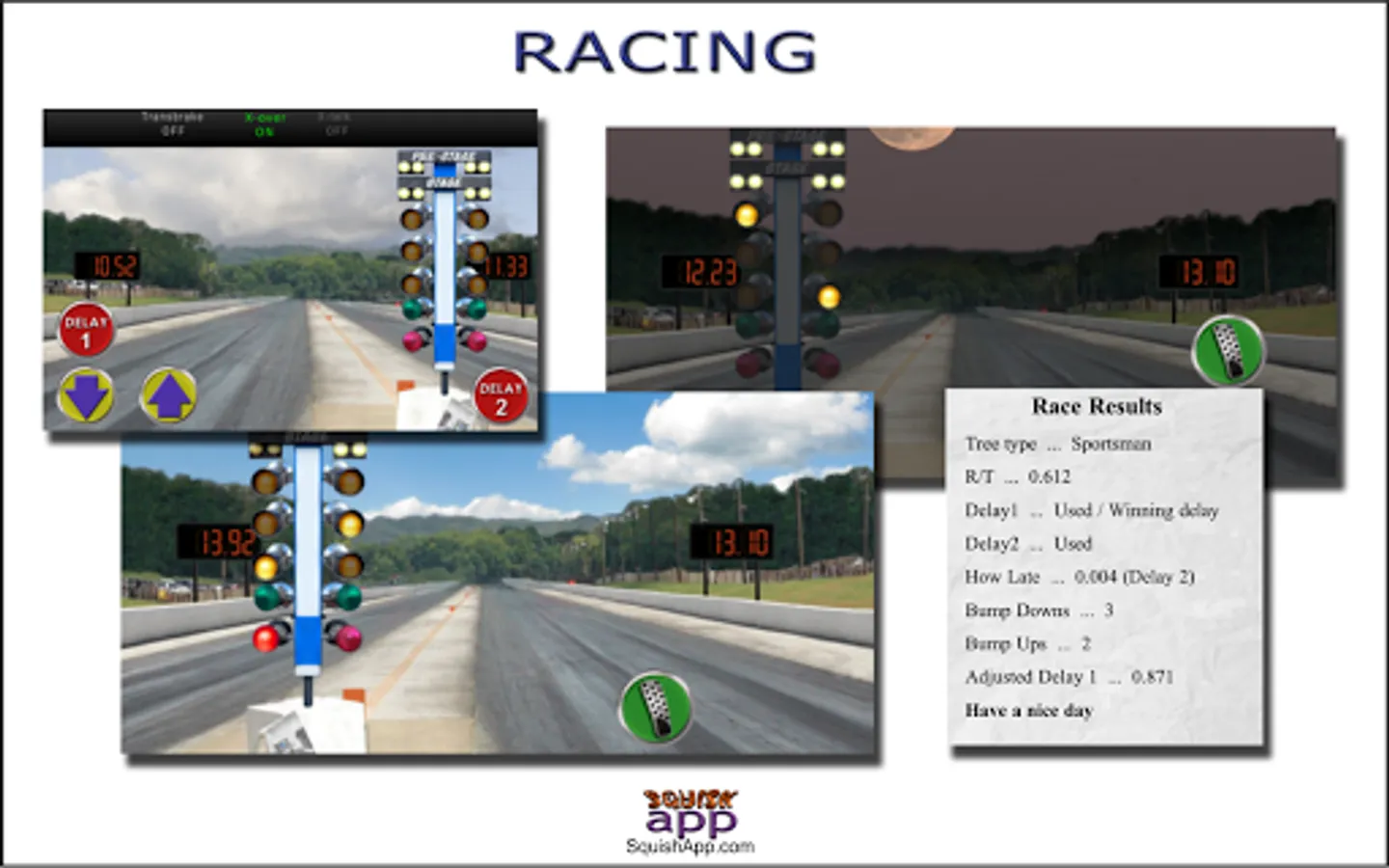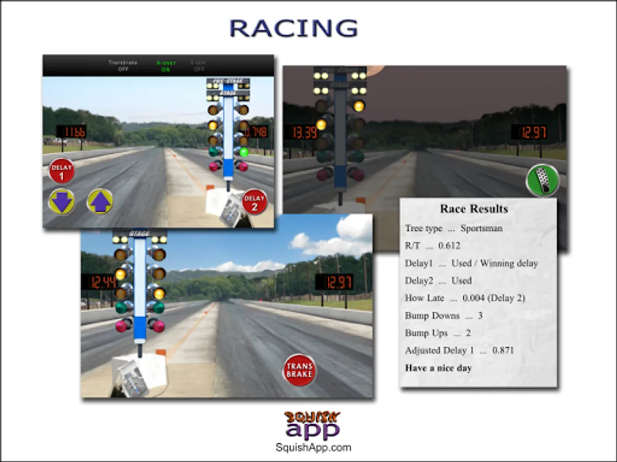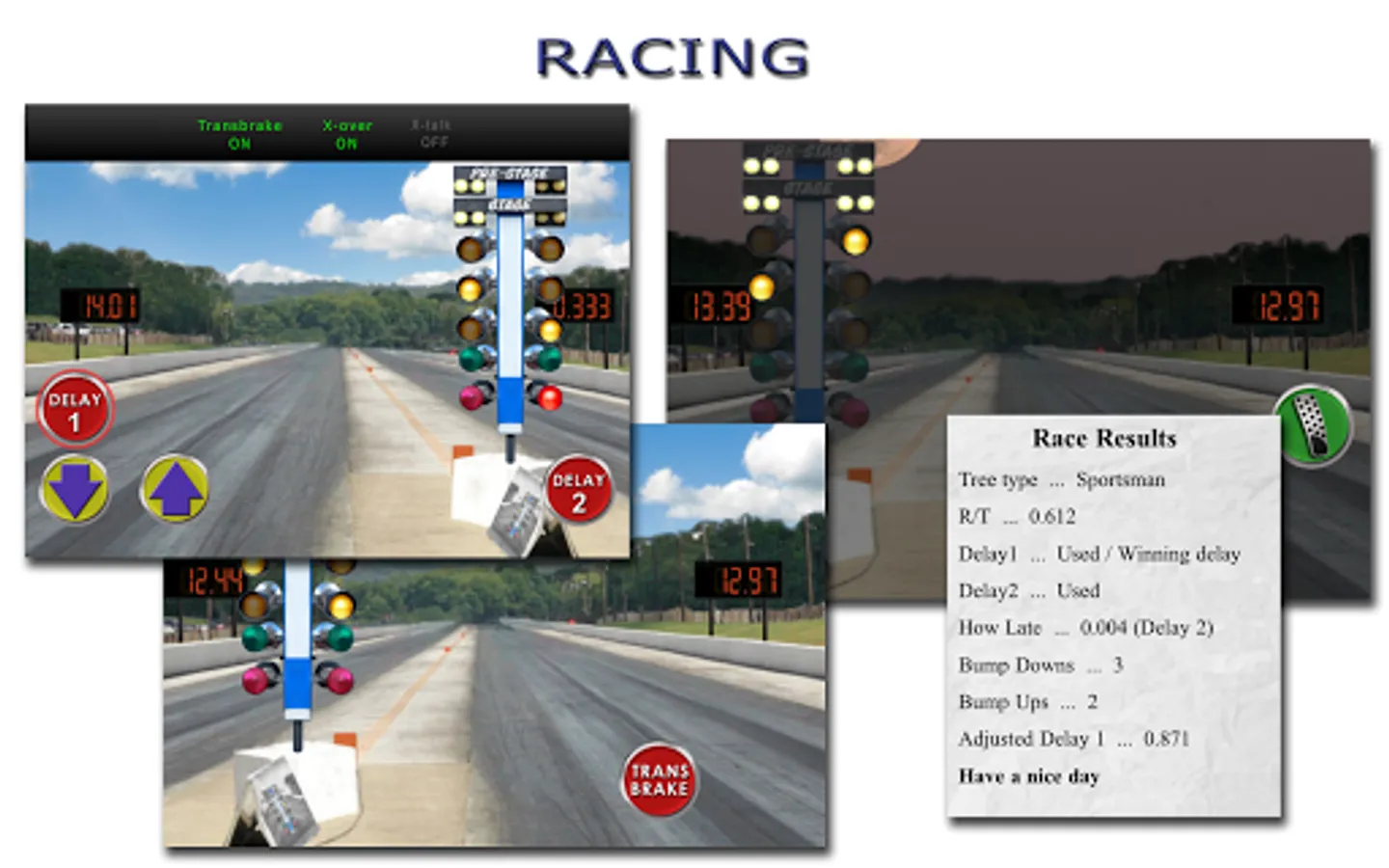 - race CPU opponent (supports bracket racing and 'heads-up' for both tree types)