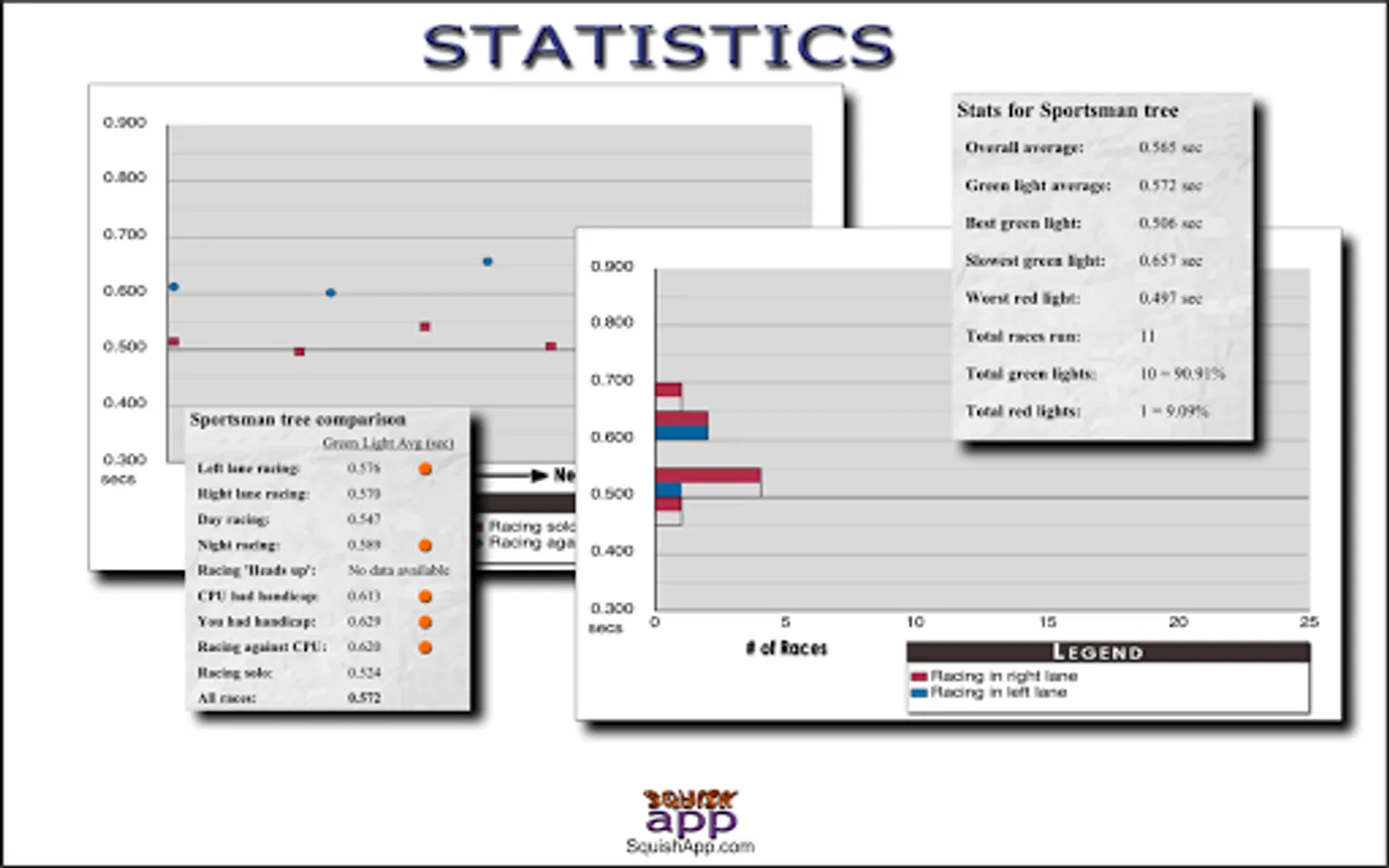 Starting Line really shines by providing you with useful stats and helping you analyze your race reaction times (r/t’s).