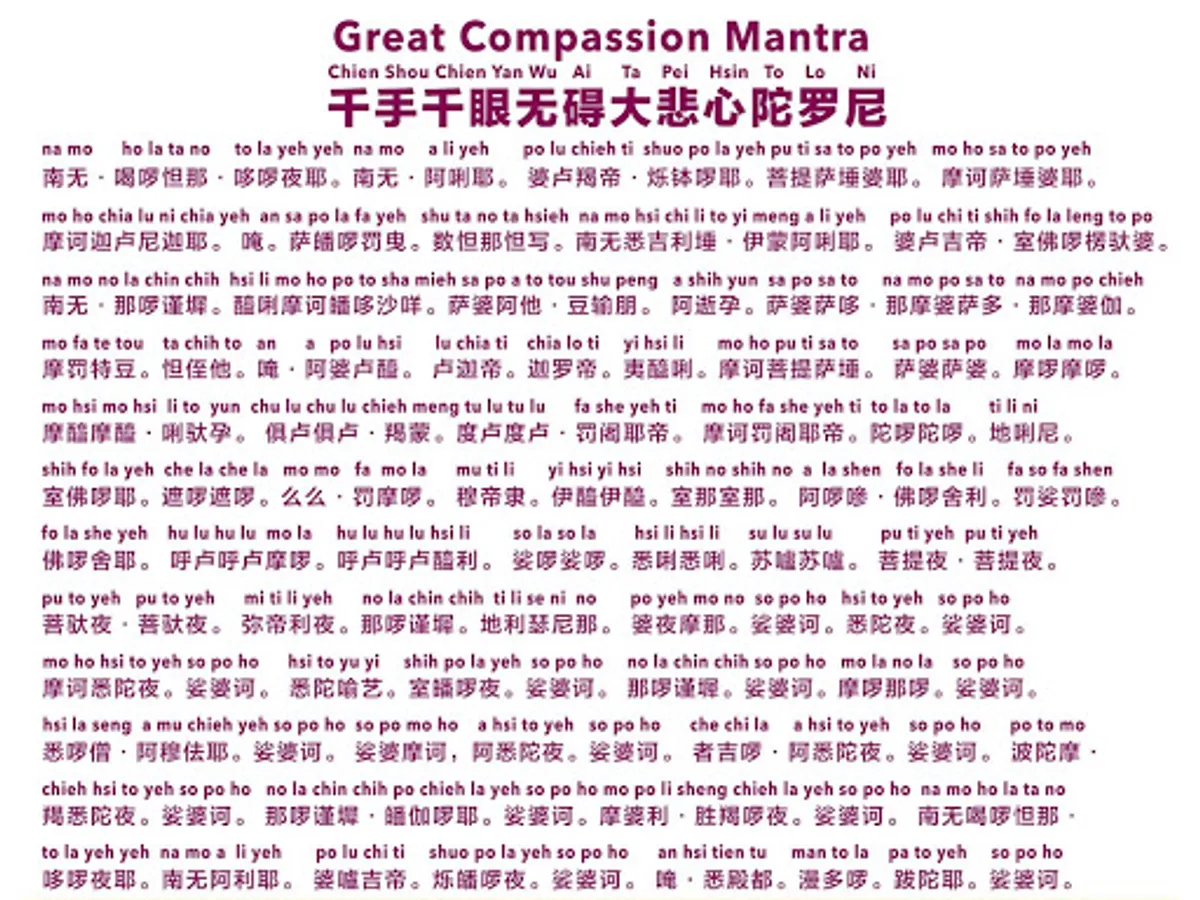qiān shǒu qiān yǎn wú ài dà bēi xīn tuó luó ní (dà bēi zhòu)
