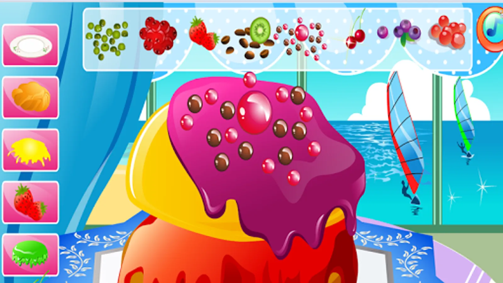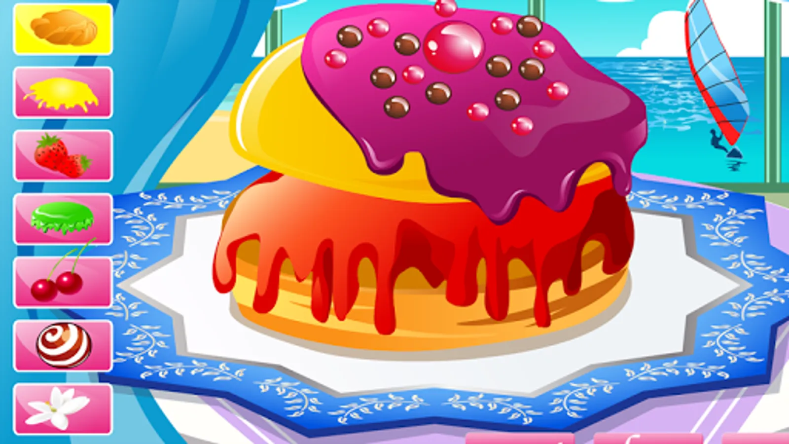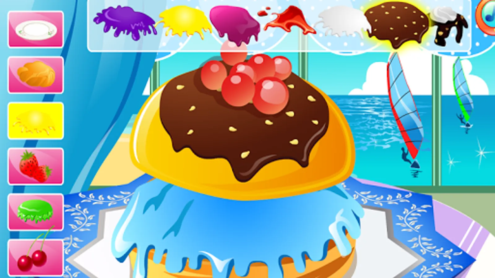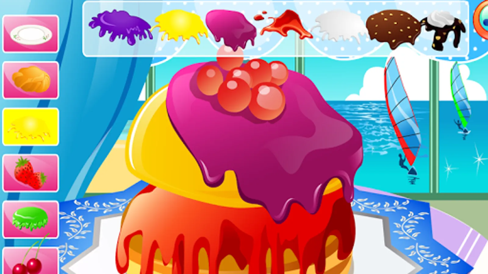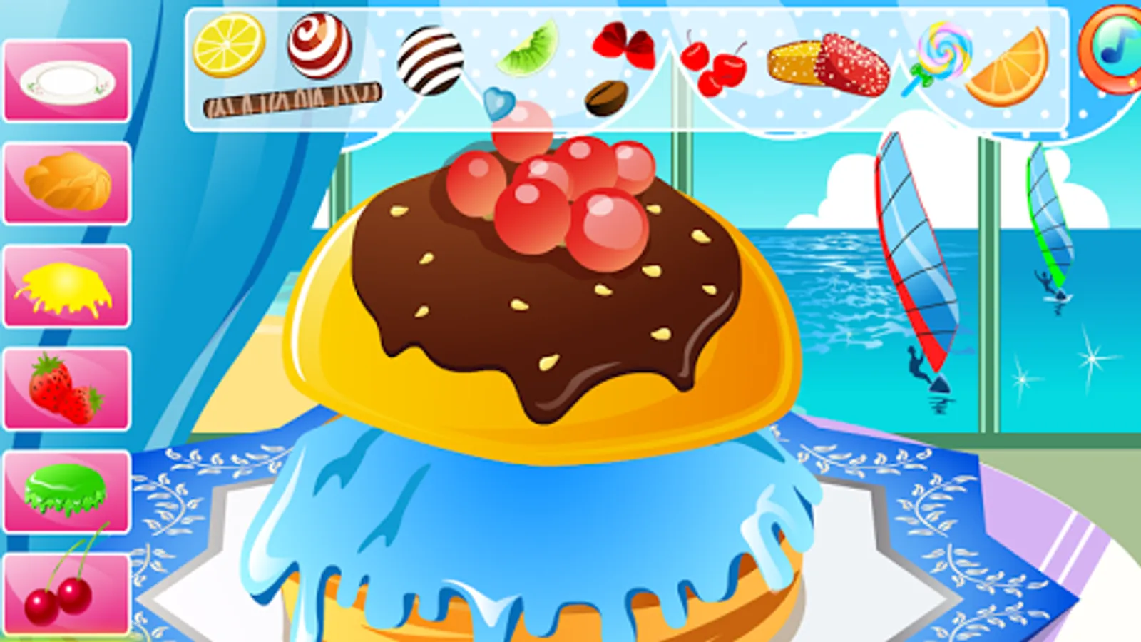 You can choose from numerous cake shapes with different fillings, create one or two storey cakes with different dressings, decorate it with figures for various occasions, add marzipan decorations, fresh fruits, candy and cream. Sprinkle it with crumbs, put on some candles and add little toys to make it even more attractive.Now, let's the party begin - watch and launch fireworks, blow out the candles and have a taste of the cake you've just created.
