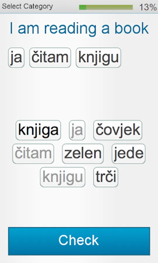 Learn Bosnian by recognizing words and images, finding the missing word, completing sentences and building sentences.