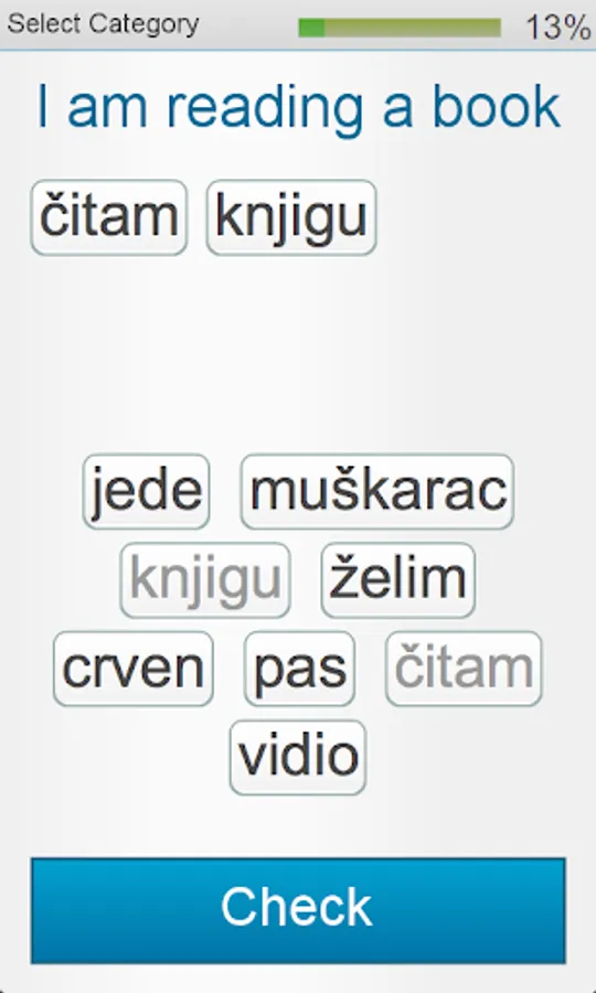 Learn Croatian by recognizing words and images, finding the missing word, completing sentences and building sentences.