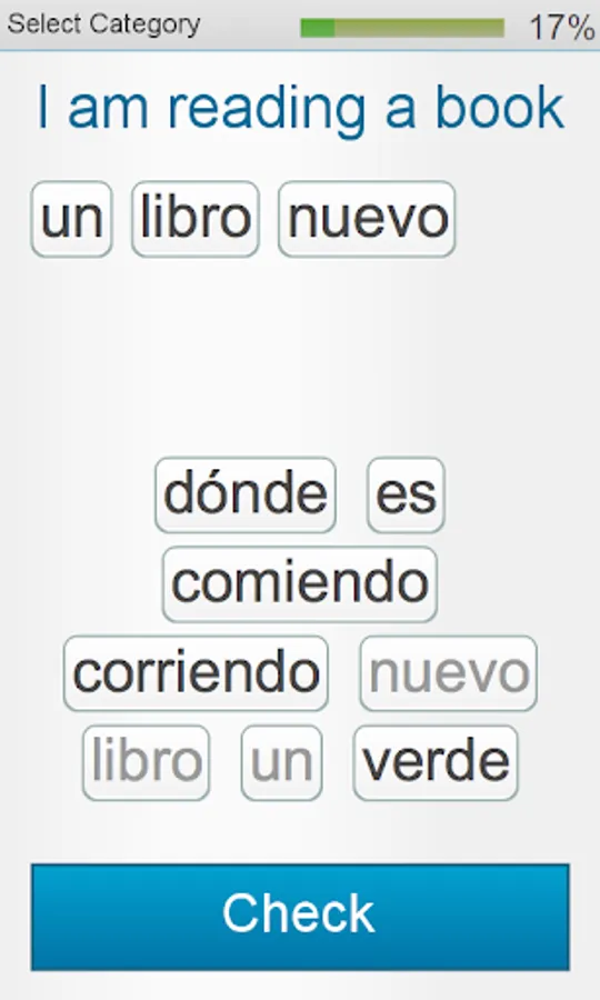 Learn Spanish by recognizing words and images, finding the missing word, building and completing sentences.