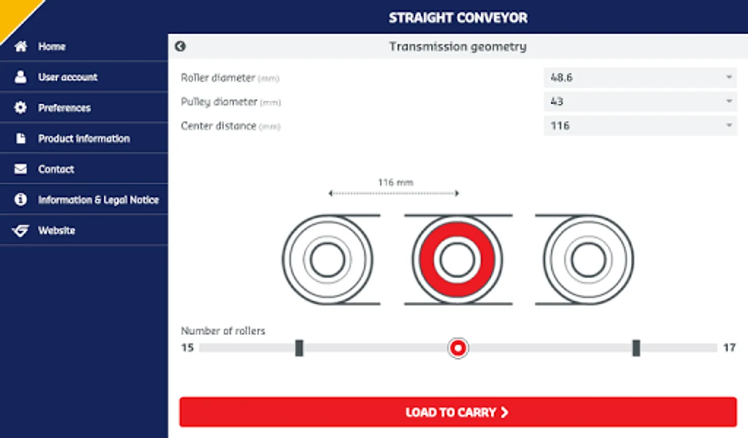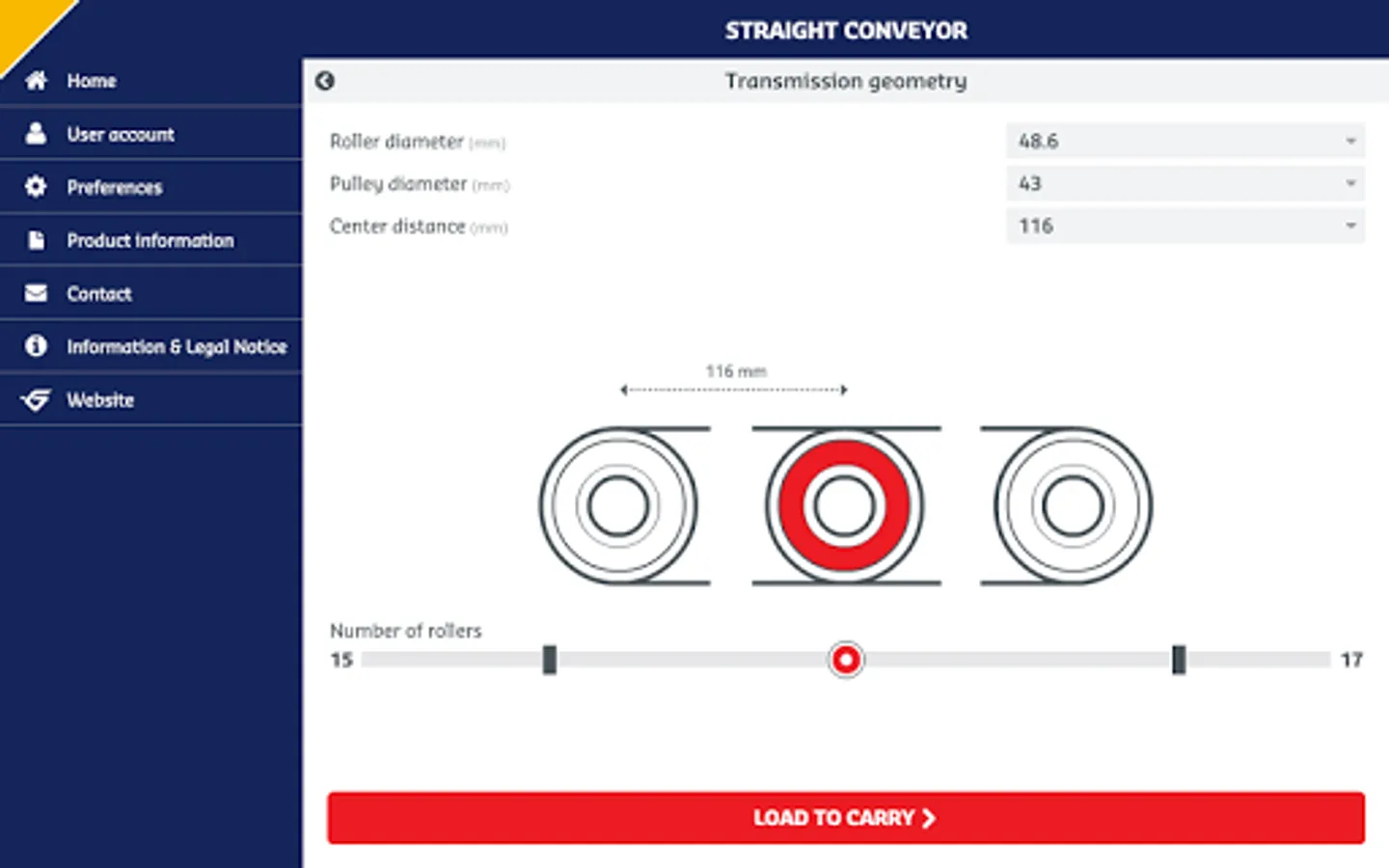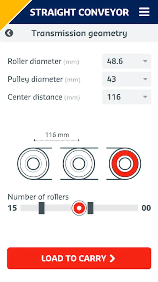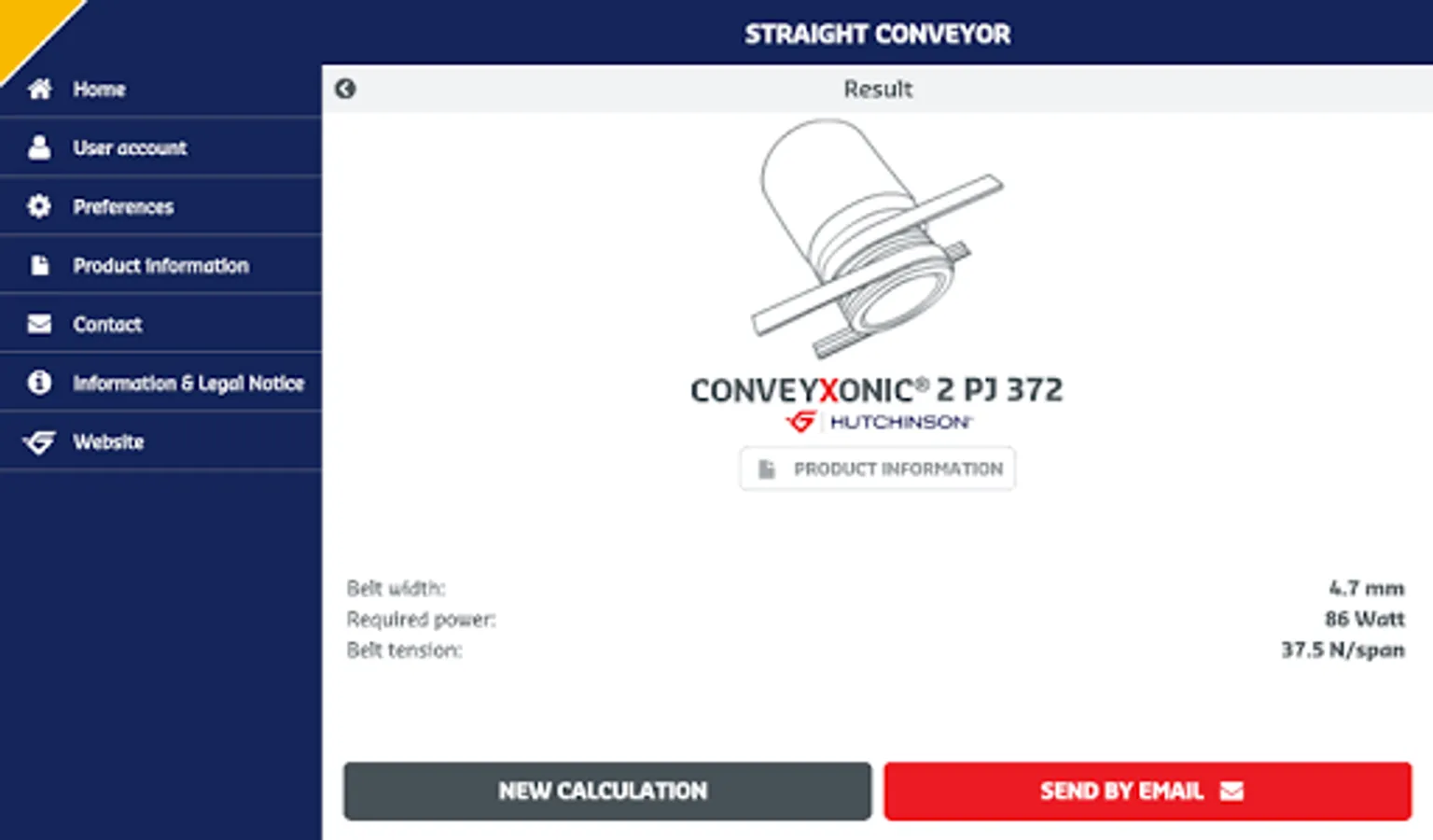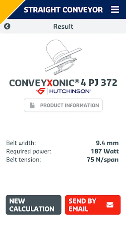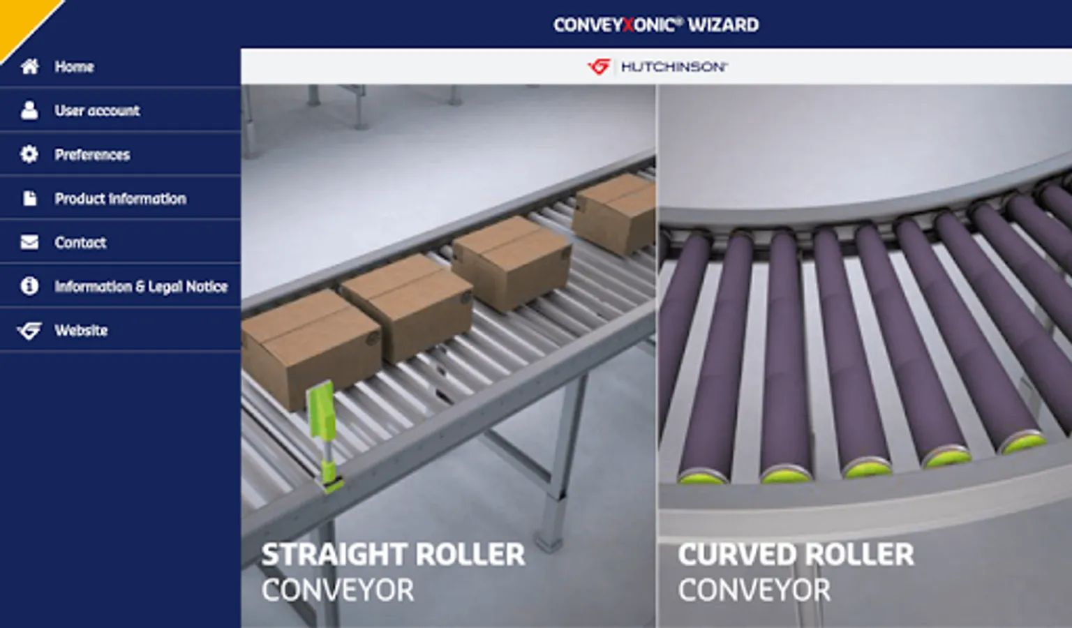The Hutchinson Conveyxonic® Wizard App guides you for dimensioning the best Conveyvonic® belt for your straight and curved roller conveyor.