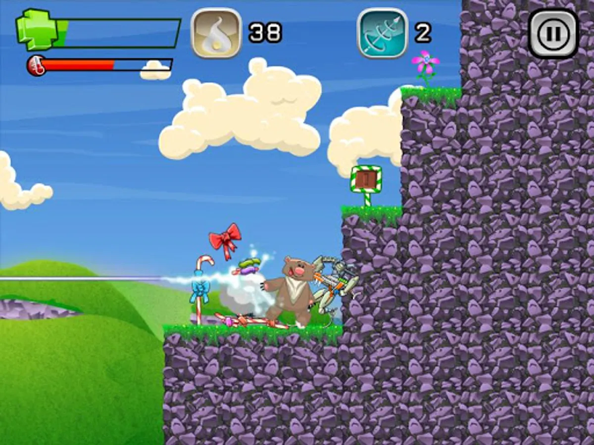 - Many different obstacles such as slippery tiles, exploding candy-bomb, jumpy-mushrooms, hanging flowers, etc.