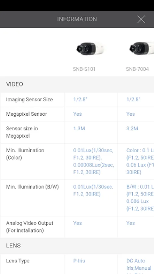 - You can then select the products onto a comparison chart and compare the detailed specifications.