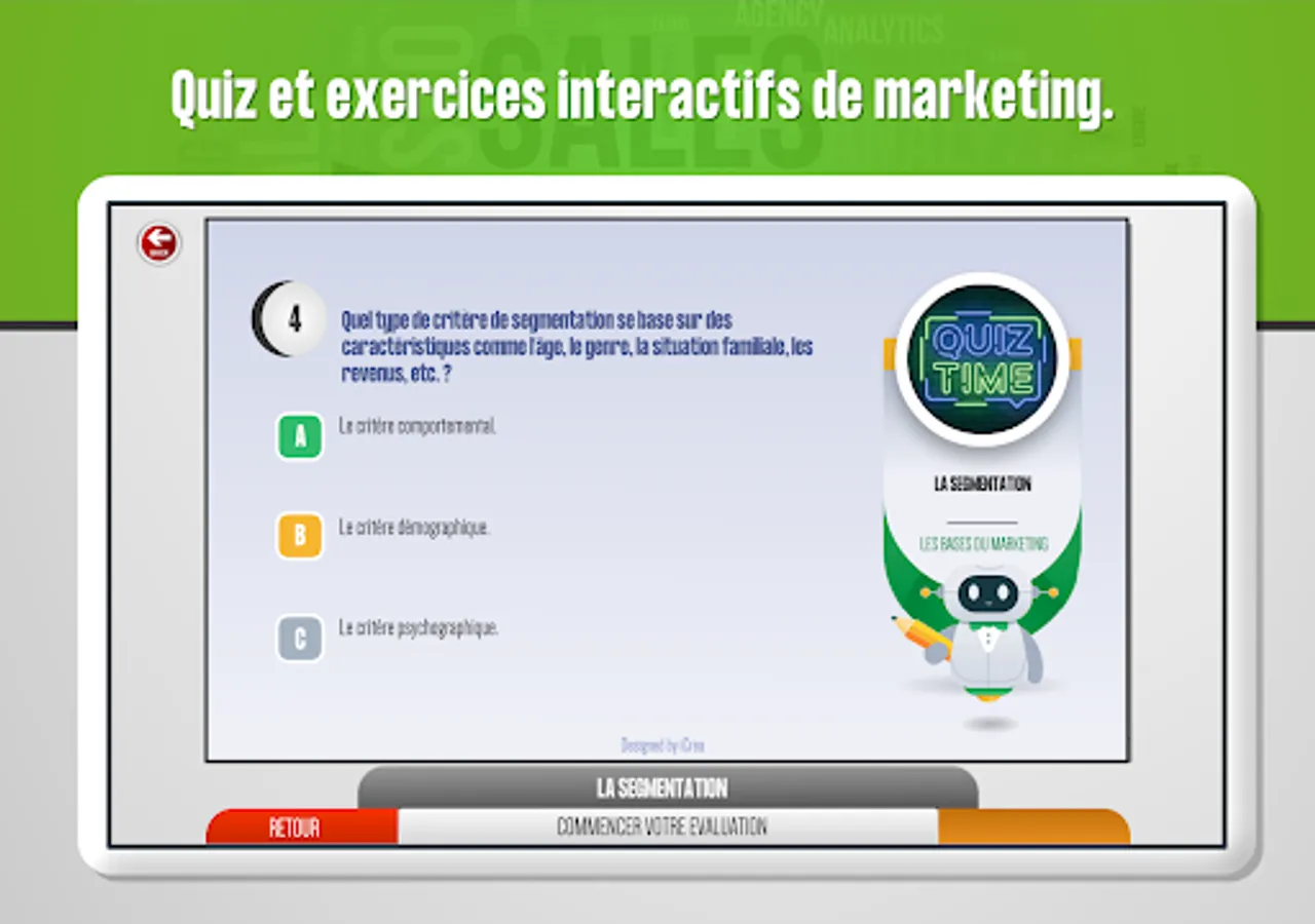 Learn the key notions of marketing while having fun with animated lessons illustrated by concrete examples and practical tips.