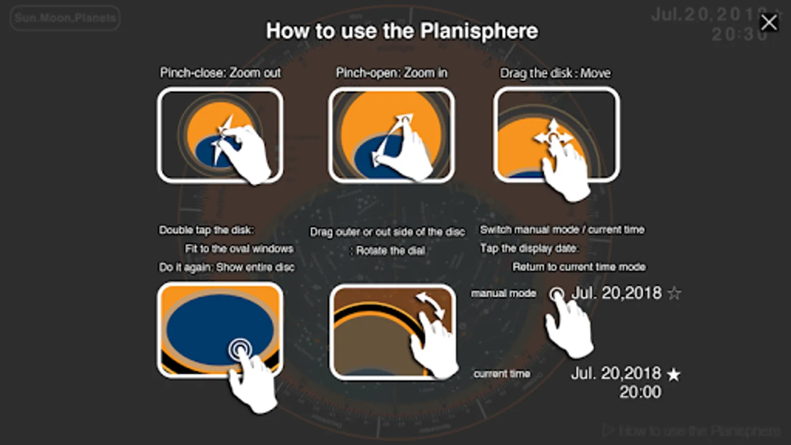 ・ Very easy usage: The usage of planisphere is exactry same as you learned. Just touch and rotate the board.